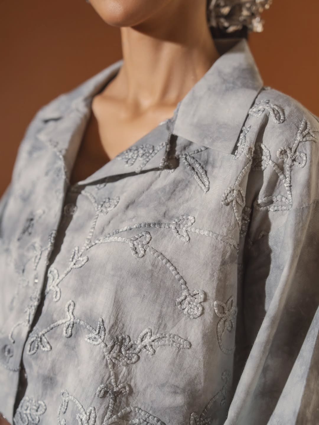 Material: Pure khaddiTechniques: One kind of Raysha work/ organic tie and dyeCare: Handwash only