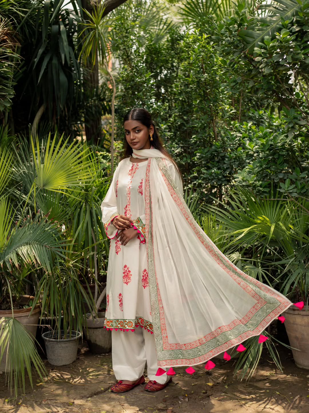 Grace stitched in every fold, and tradition printed in every block, this kameez, shalwar, and dupatta set is a quiet celebration of our roots.