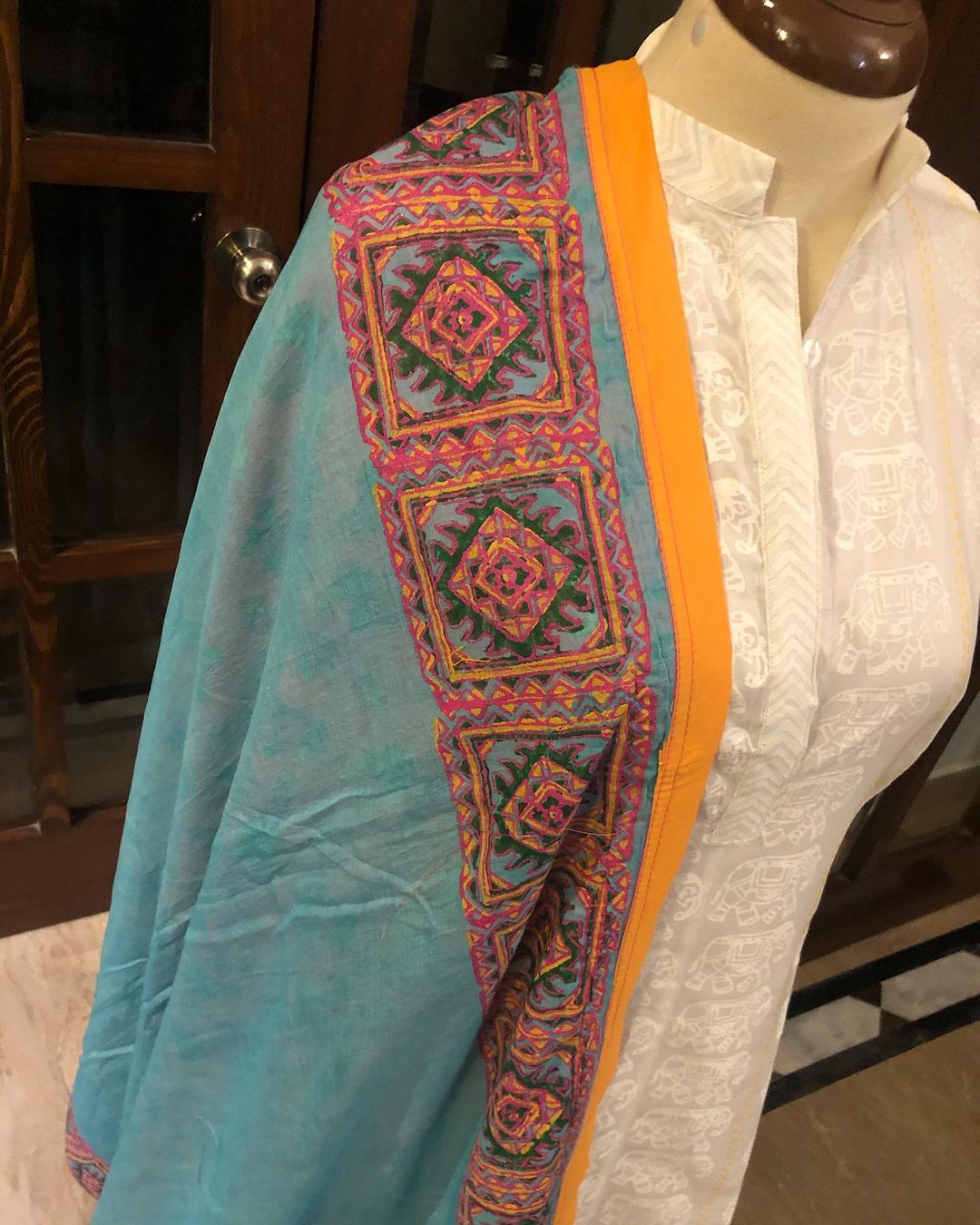 Organic block printed Doshalla.