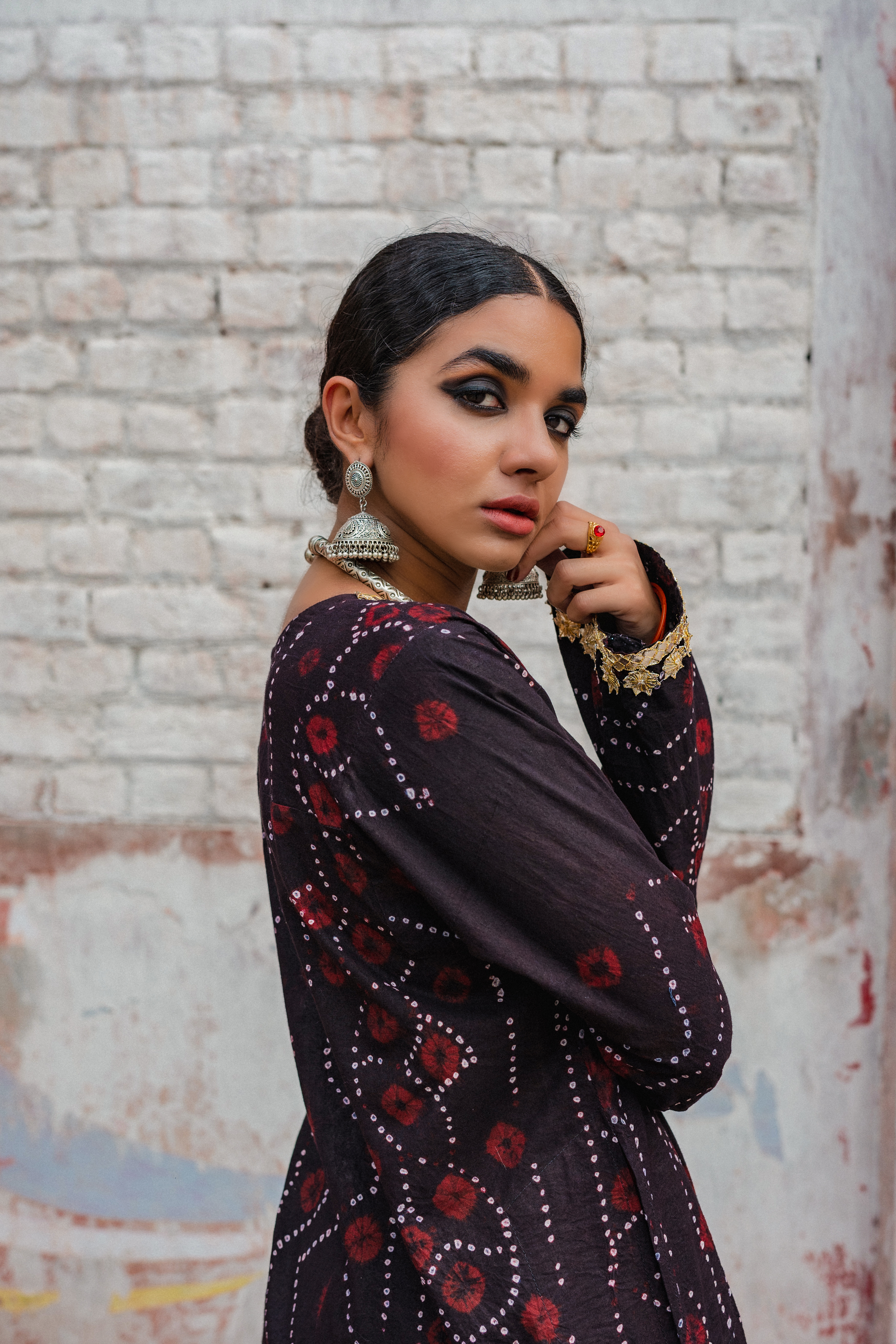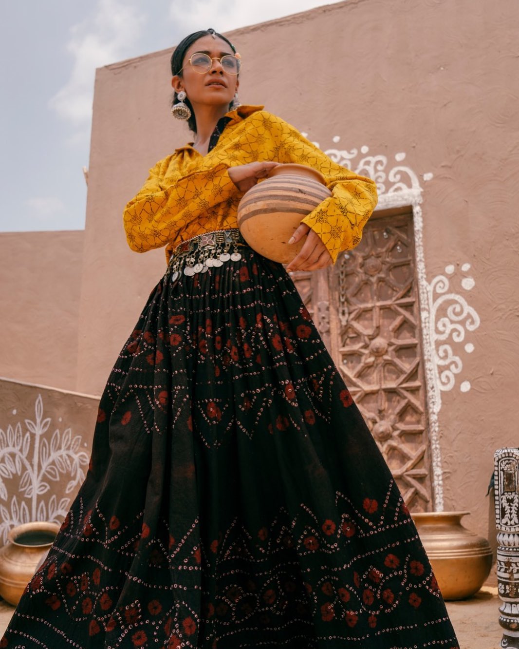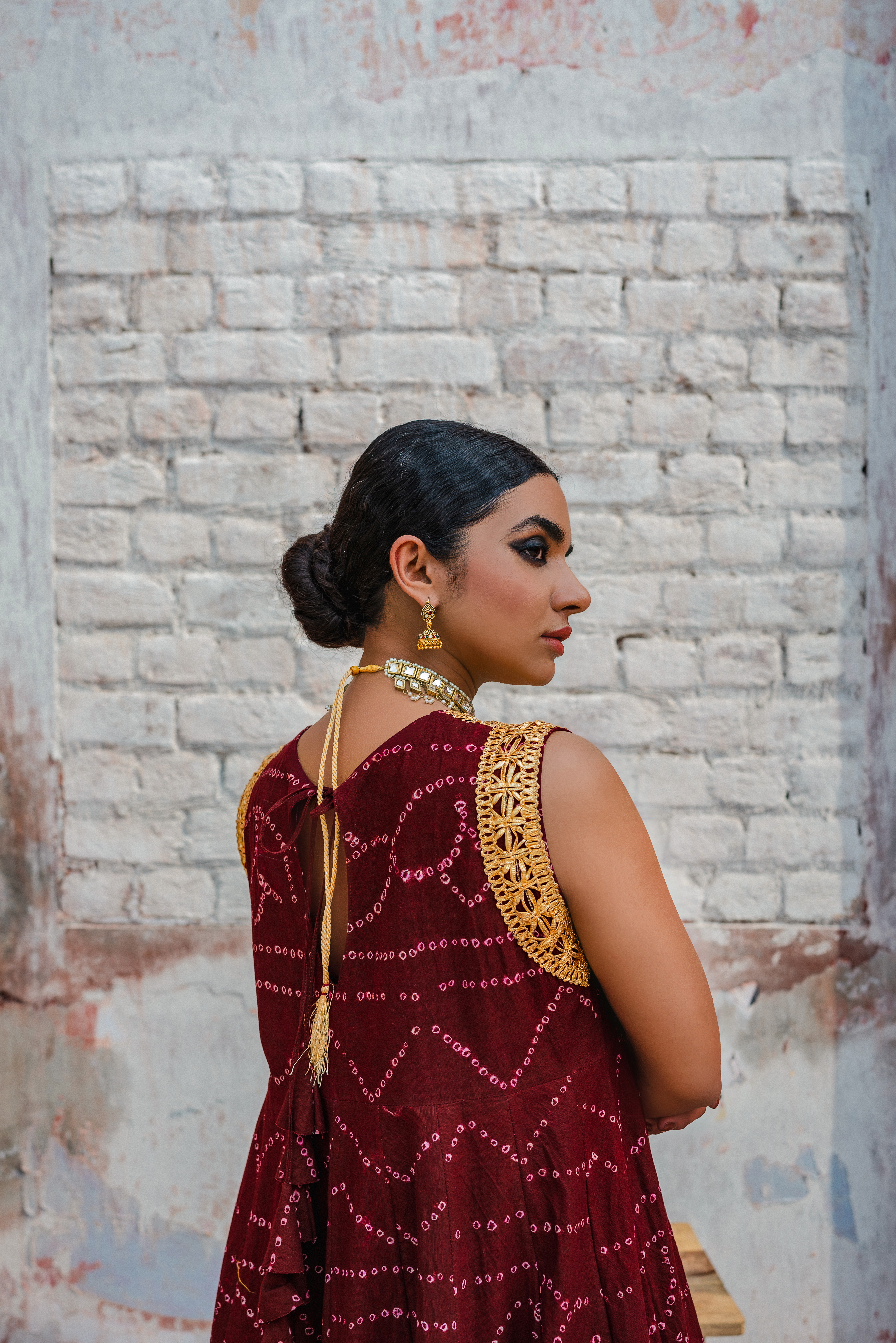 Organic chunri gharara with white cotton shirt
