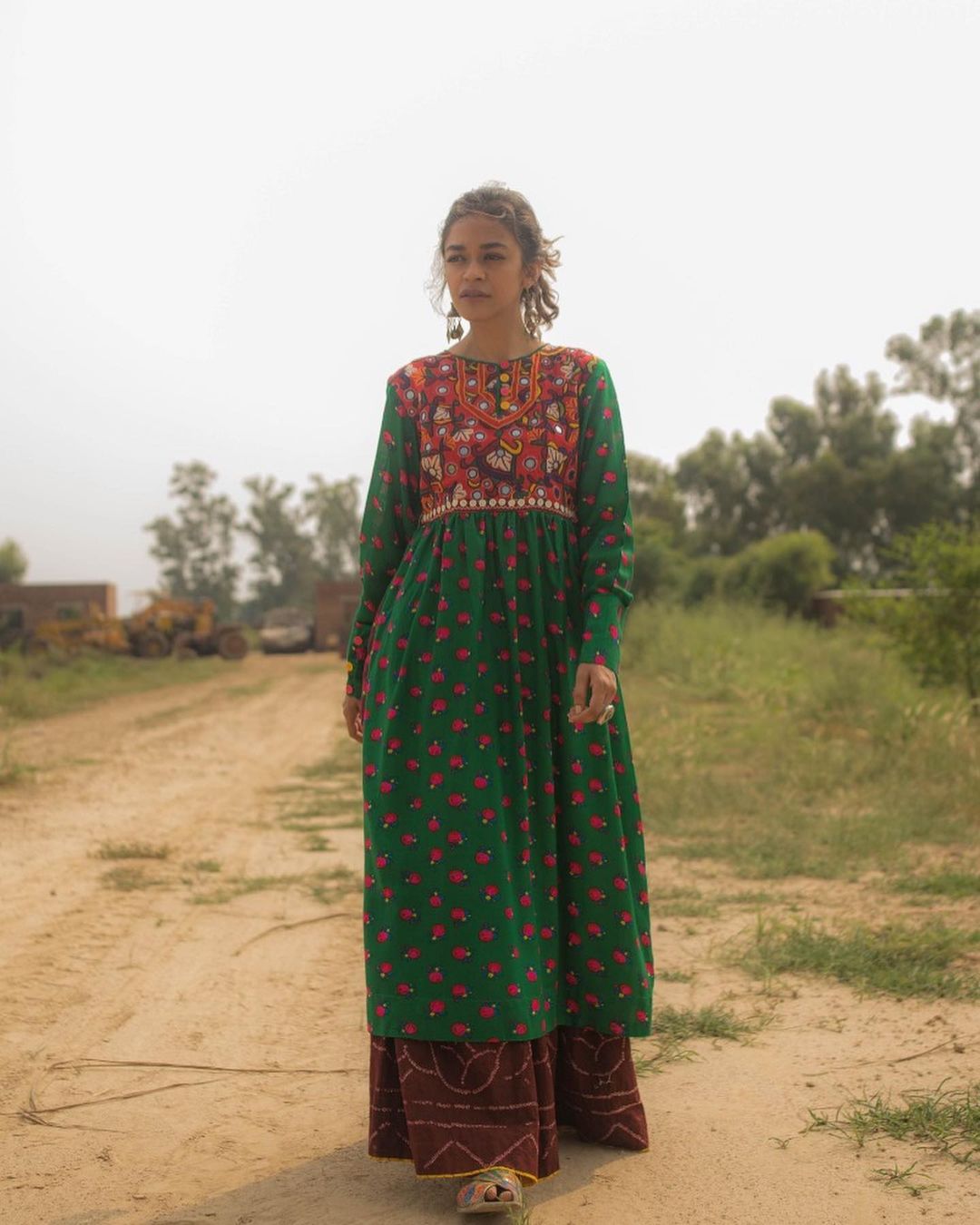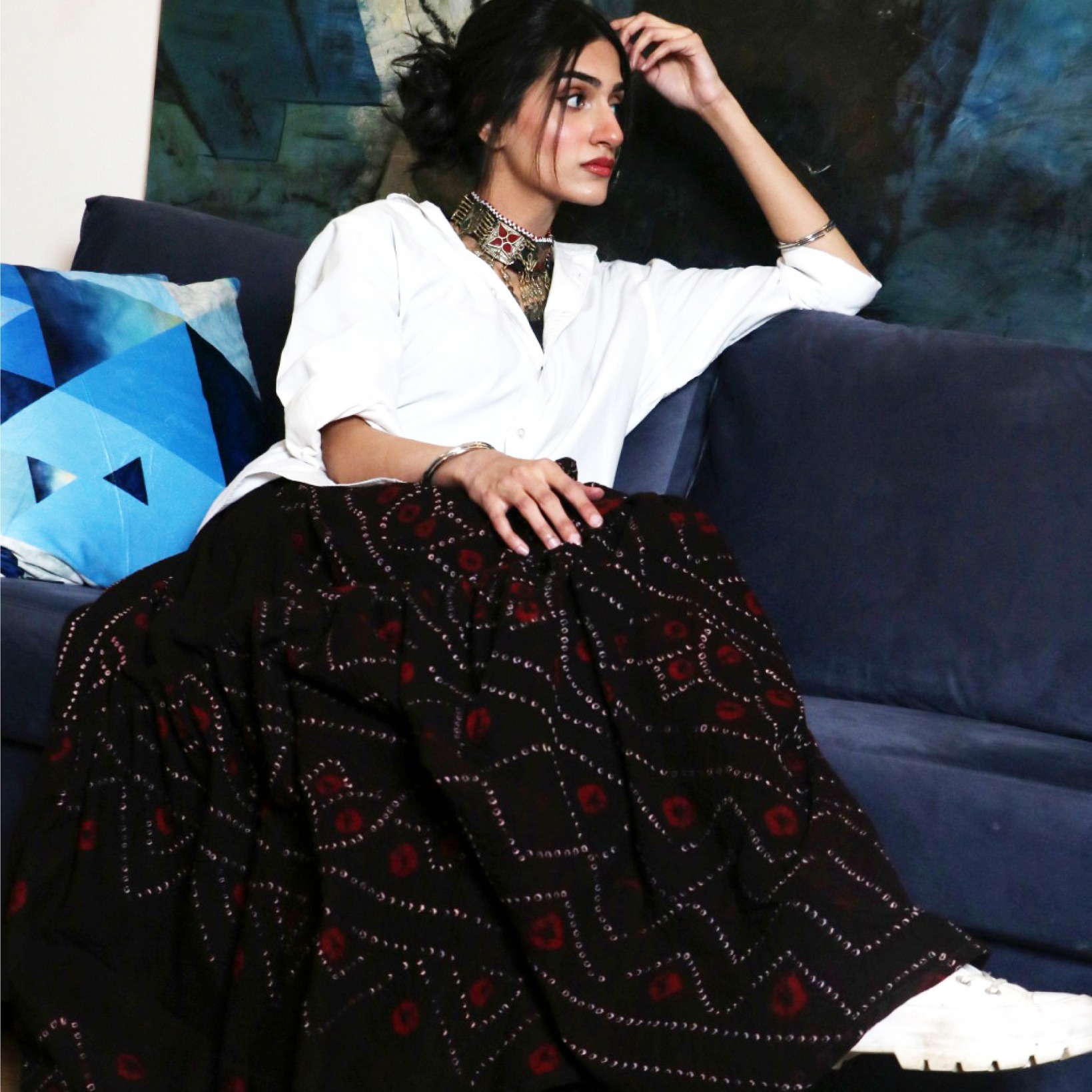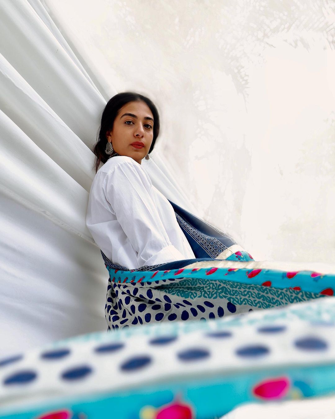 Organic chunri gharara with white cotton shirt