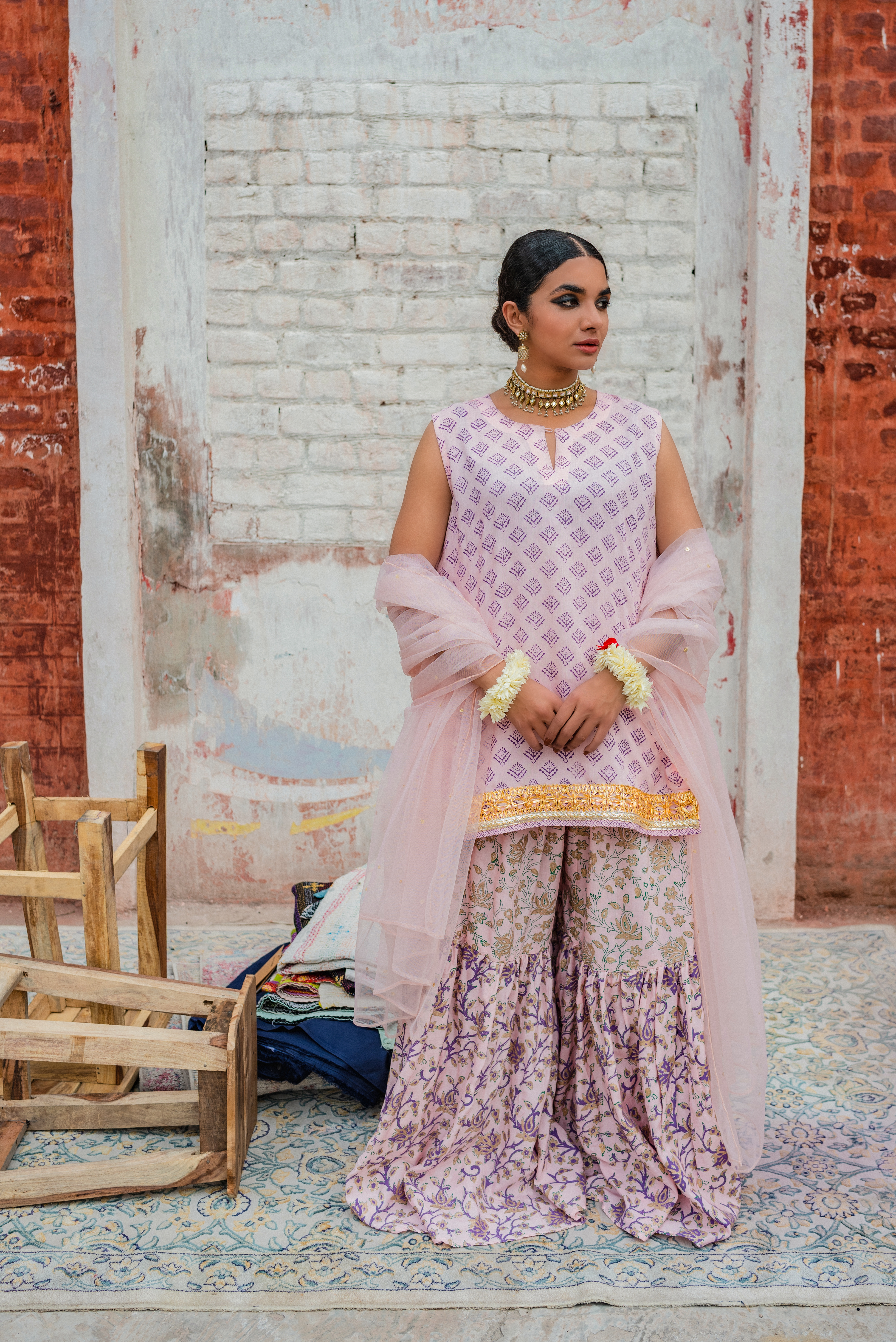 Block printed gharara set