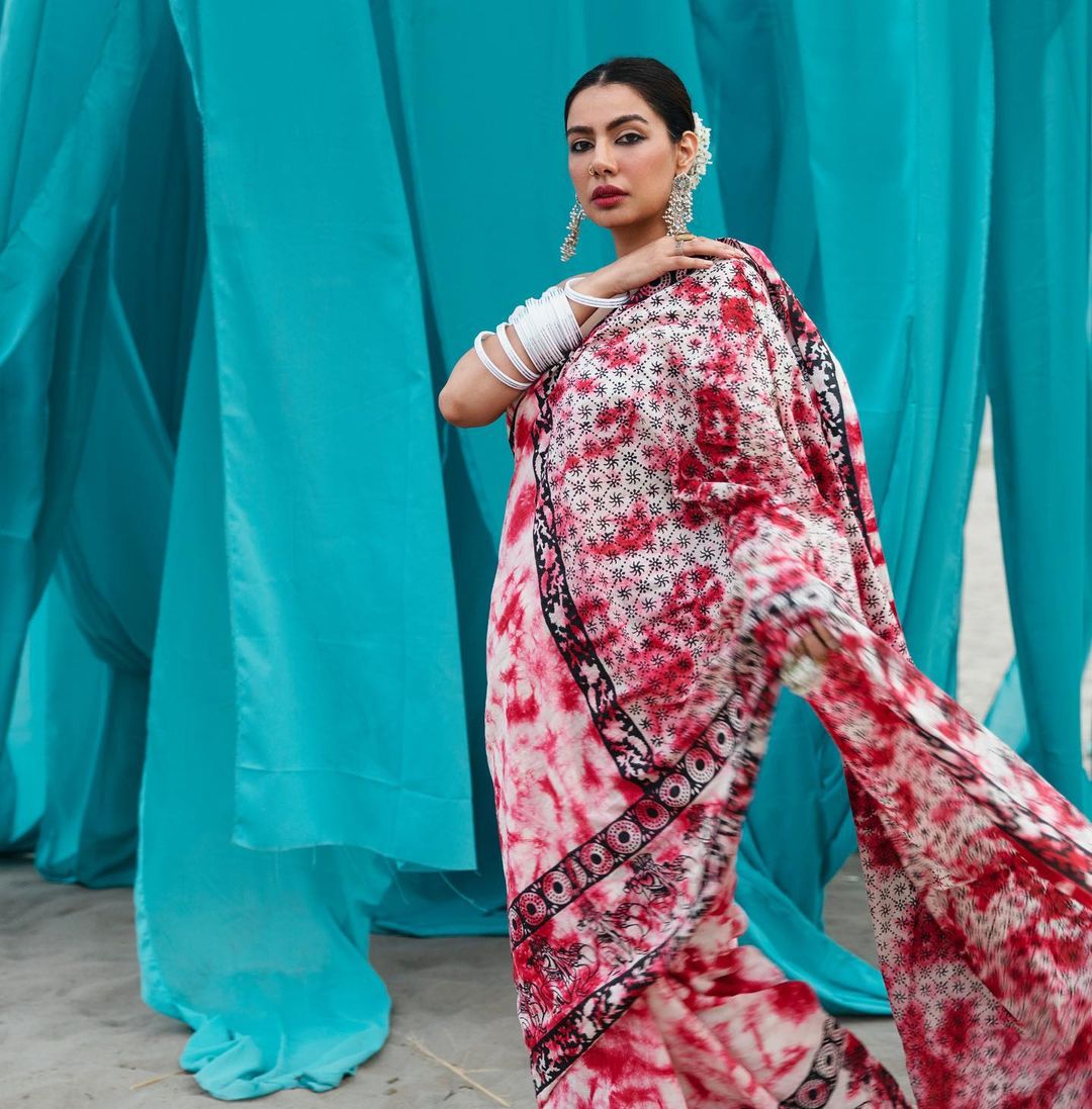 Tie and dye block printed saree