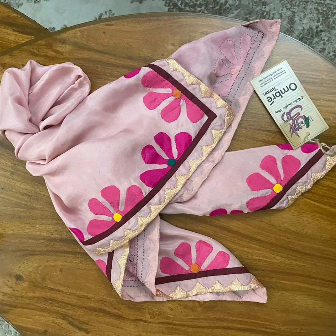 Block printed patch work silk scarf