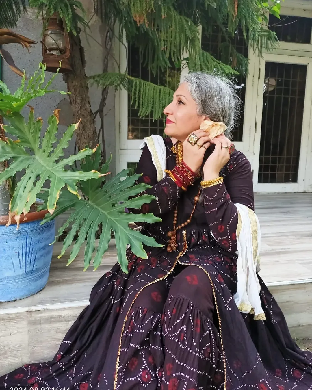 Grace and tradition intertwine as Sadia Sarmad, a timeless beauty, adorns our angrakha and gharara with the elegance of hand knotted organic chunri , celebrating the art of heritage in every fold.