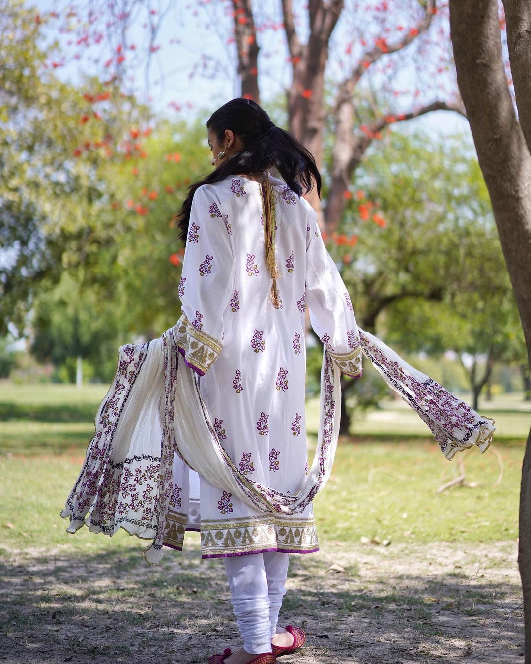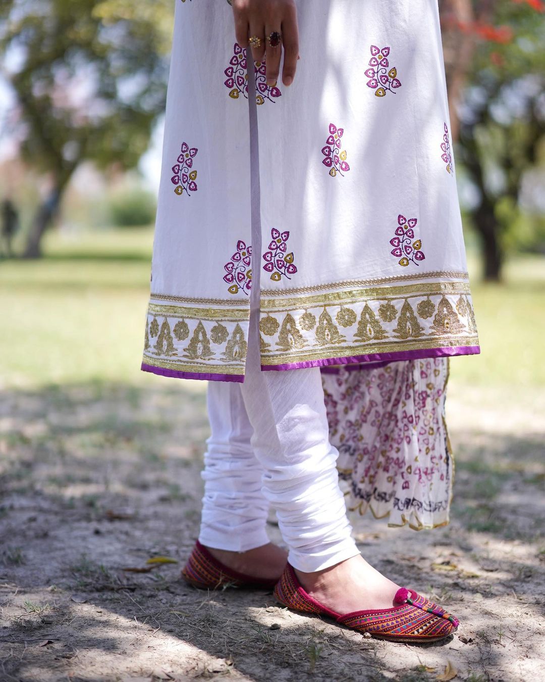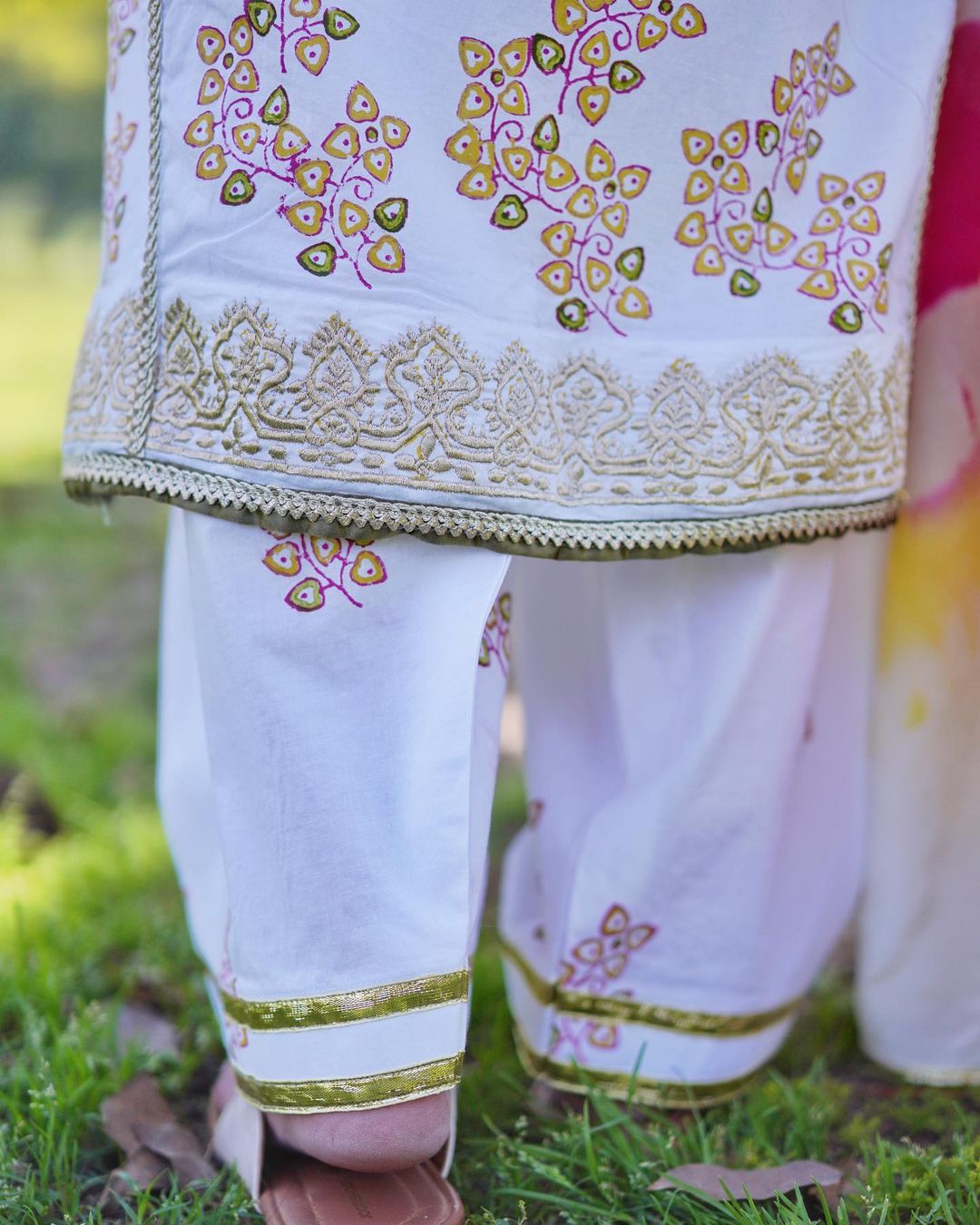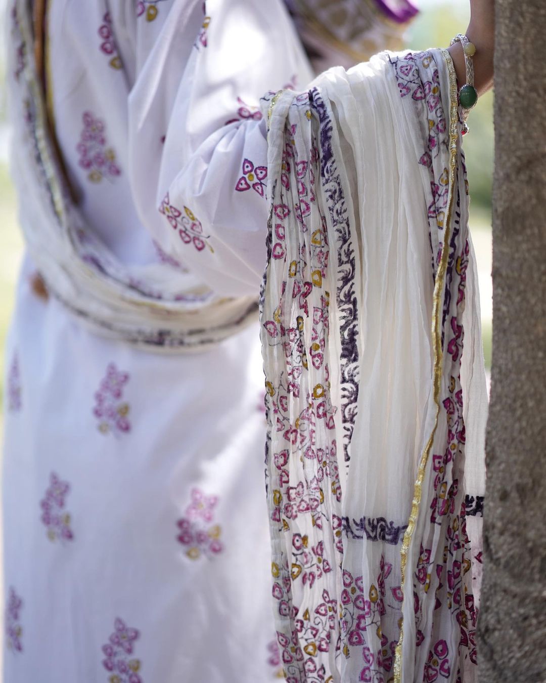 Block printed tilla work on daman shirt choridar pajama with dupatta