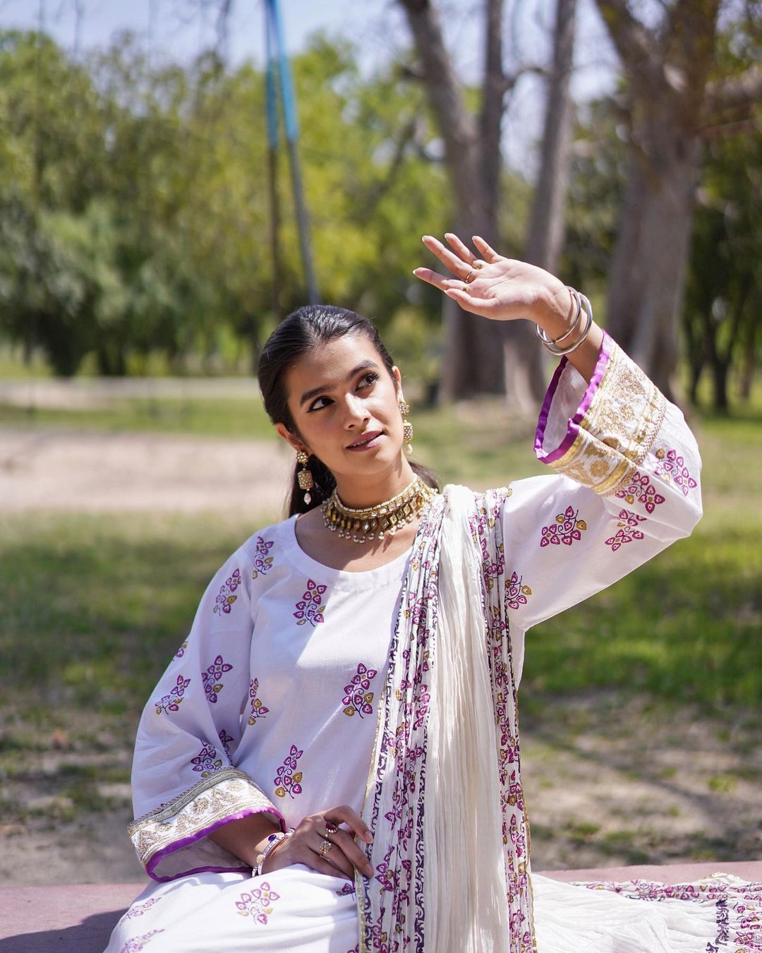 Tag: Block printed tilla work on daman shirt choridar pajama with dupatta