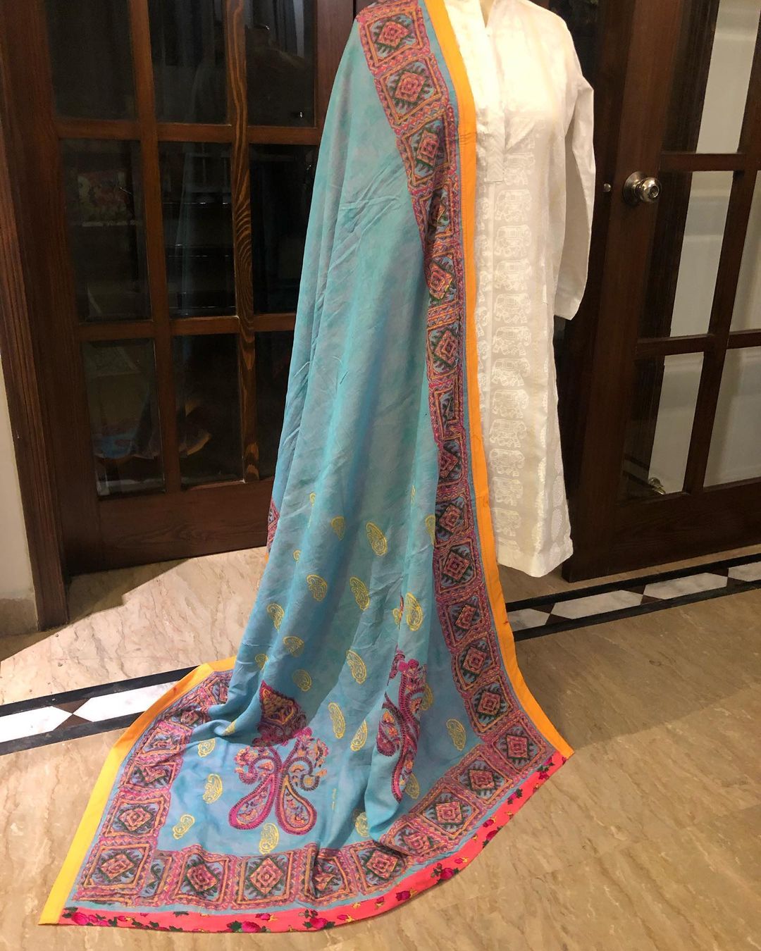 DOSHALA Turquoise side with pink and yellow thappaDOSHALA Turquoise side with pink and yellow thappaSee less