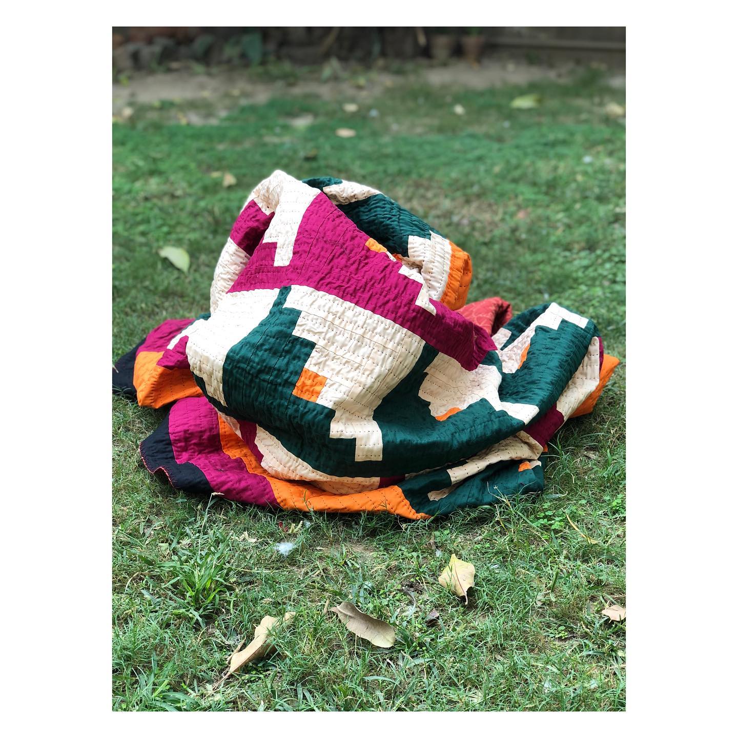 Multipurpose Double-sided Kantha Covers -Showing a mixture of vibrant patchwork of layers upon layers of fabric, using bold colours which are woven together with running stitch all over.Size - 7ft 10 inch by 6ft