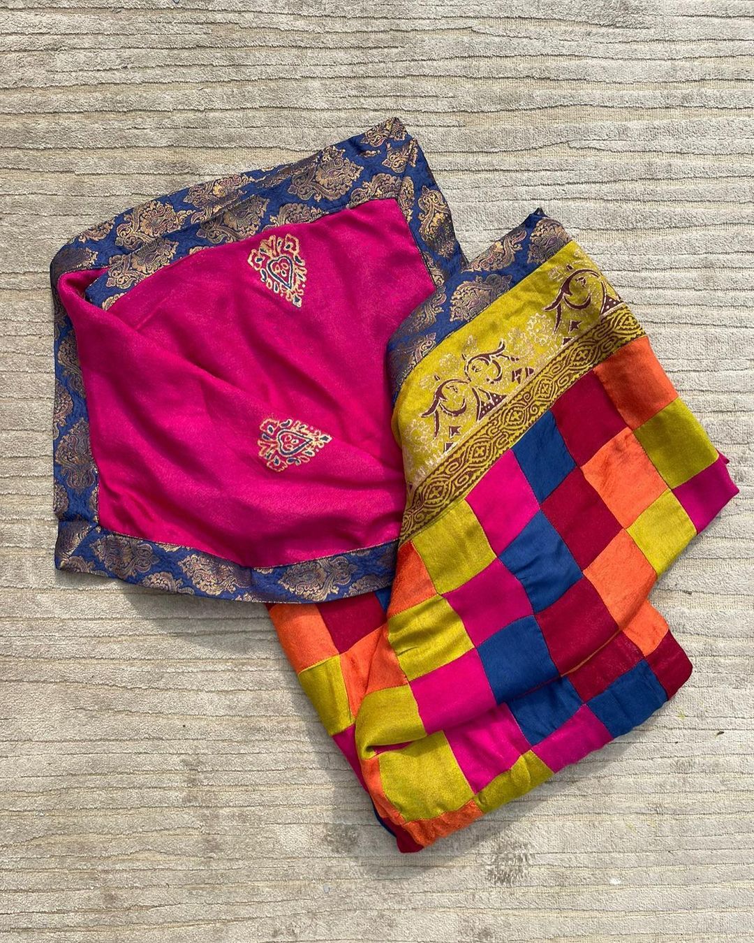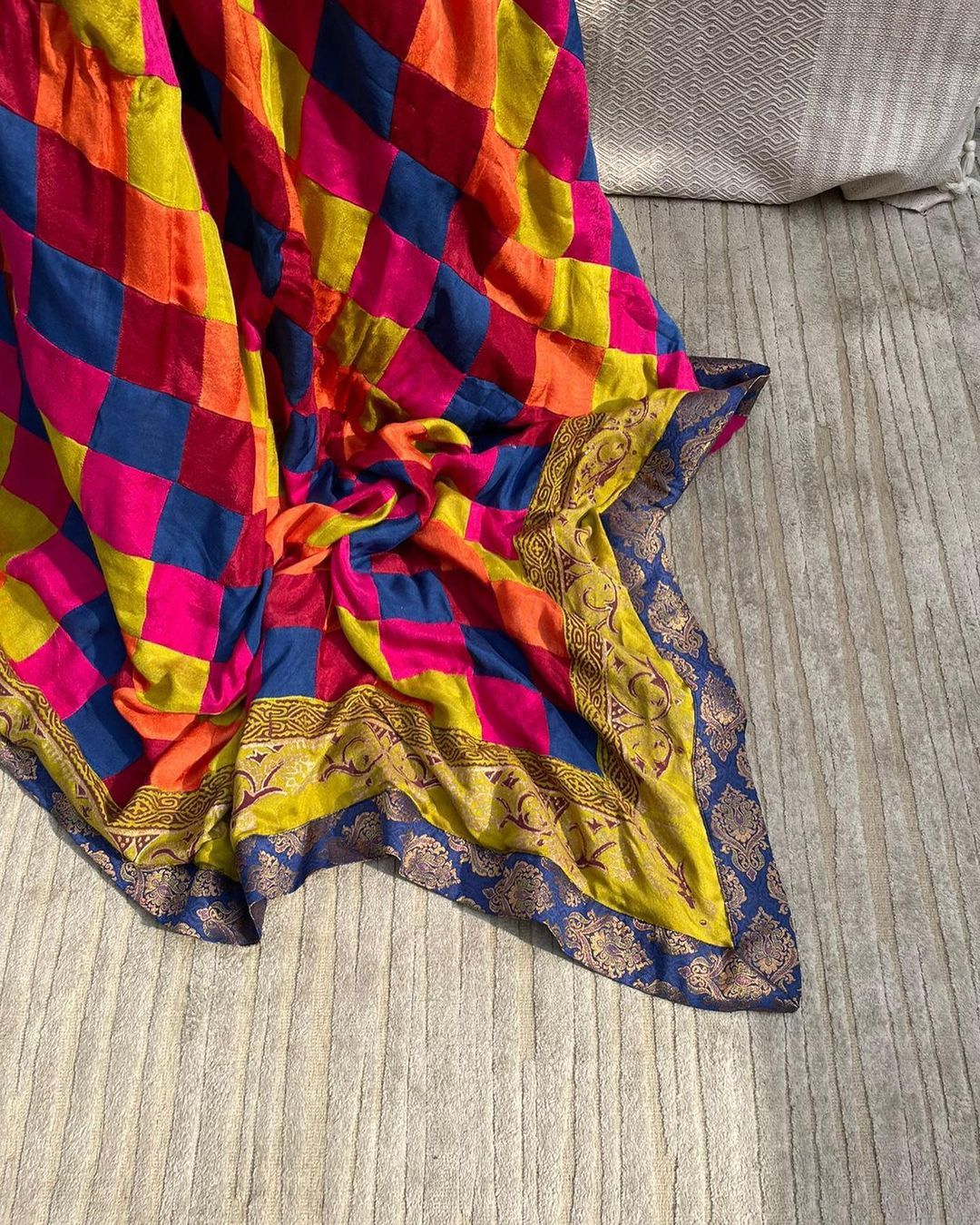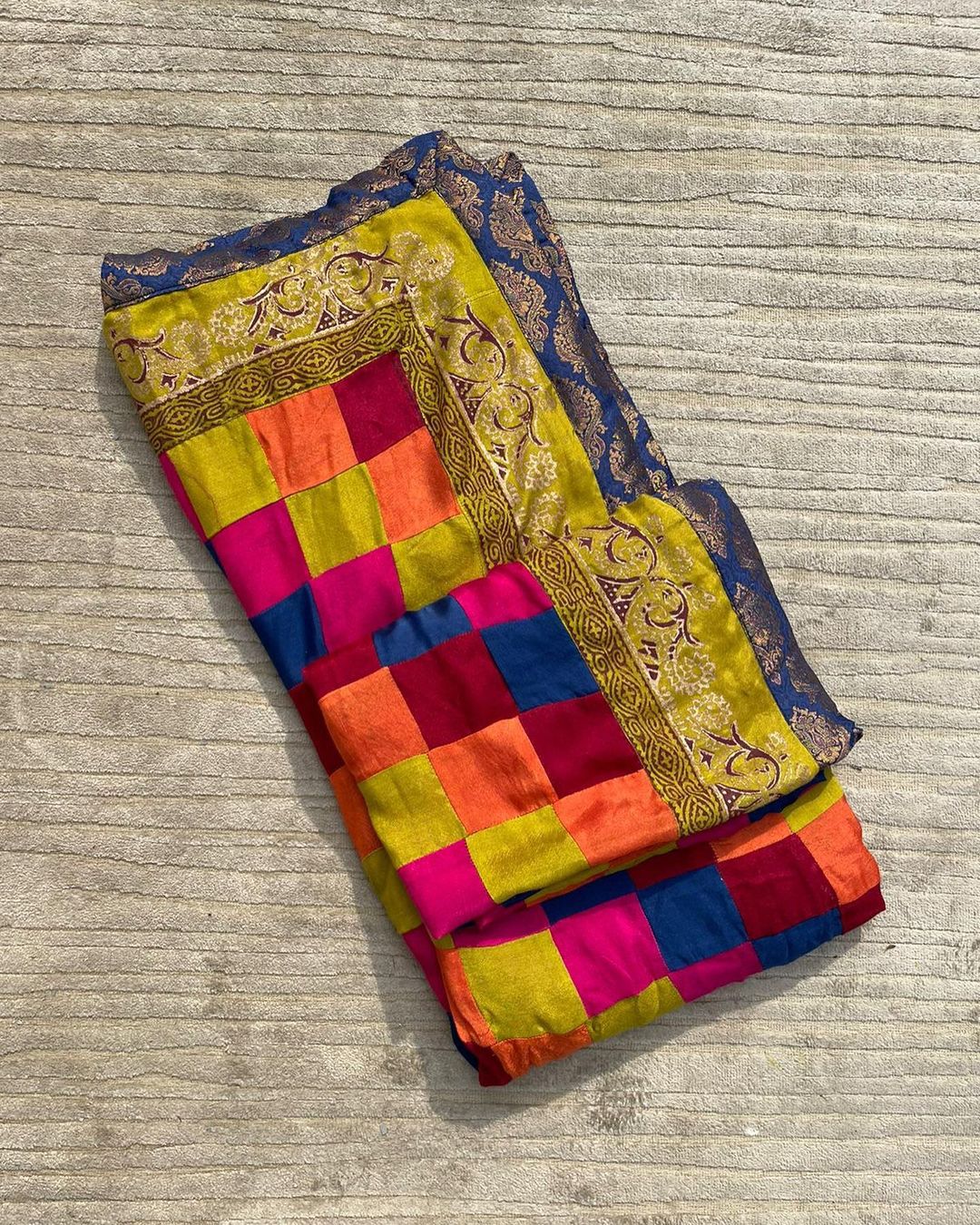 Our Formal Doshala - they are reversible shawls with one side of silk patchwork with block print and other side with silk with jamawar and block print.