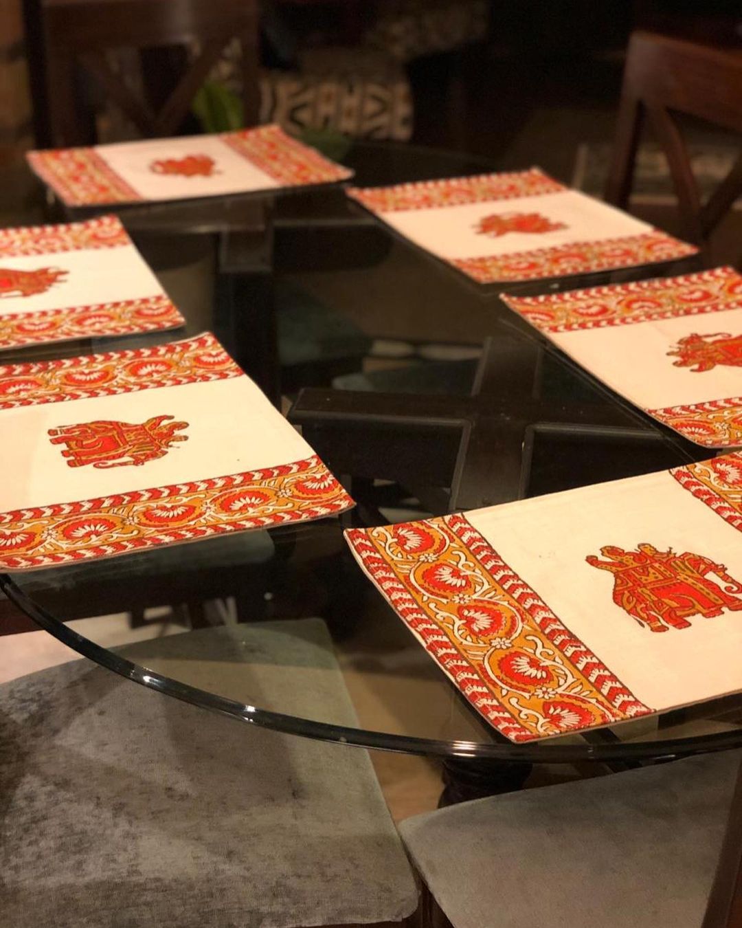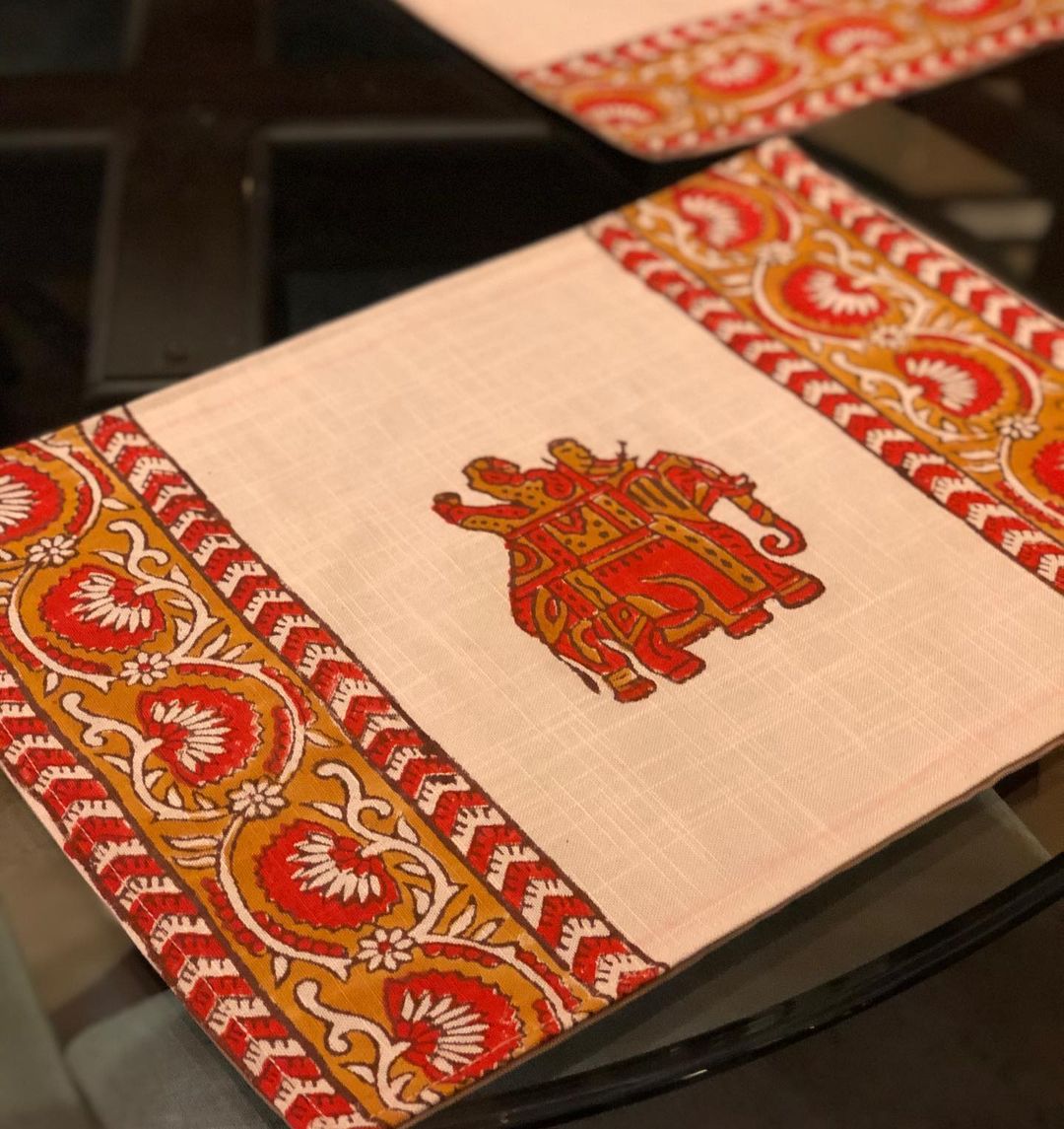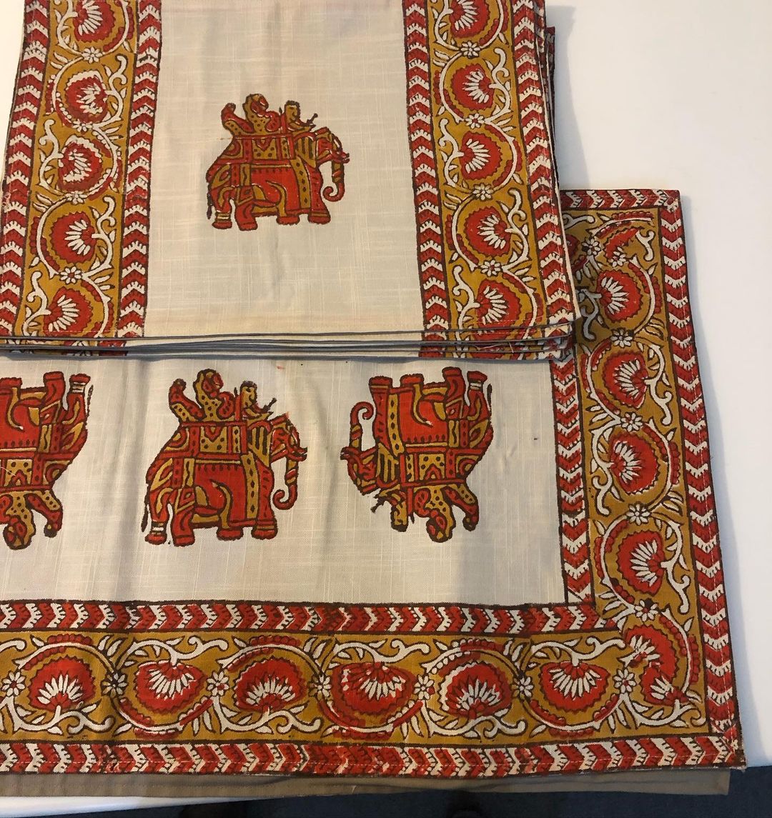 Handcrafted elephant printing Placemats & Runner Handcrafted elephant printing Placemats & Runner See less