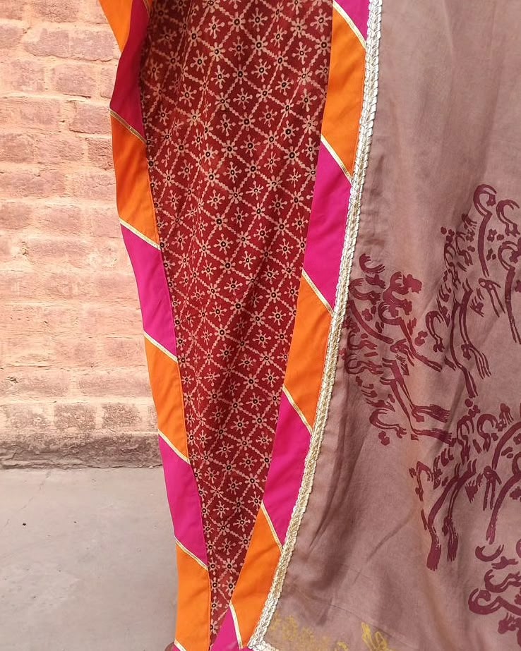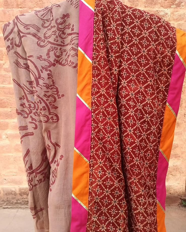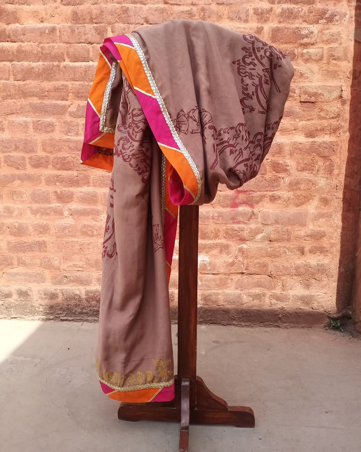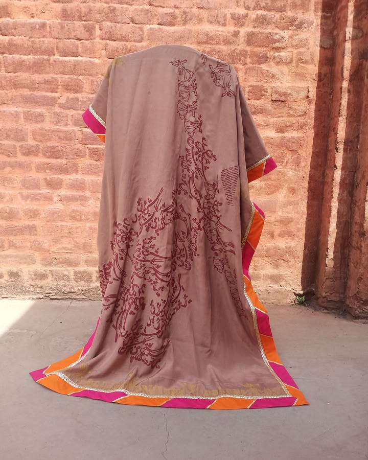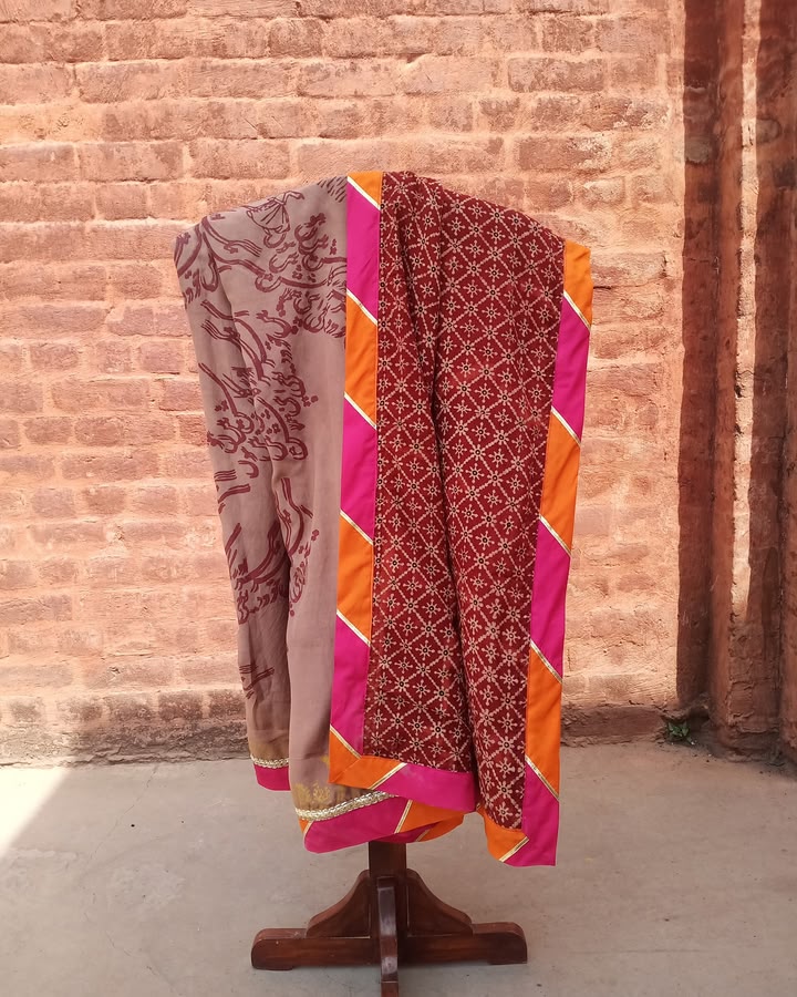 Introducing our newest creation, lovingly crafted by our dedicated artisans. This double-sided gem features Rumi's soulful poetry on one side and beautiful ethnic block prints with organic dyes on the other. Adorned with vibrant chattapati borders, it's a heartfelt tribute to the passion and hard work of our talented artisans.