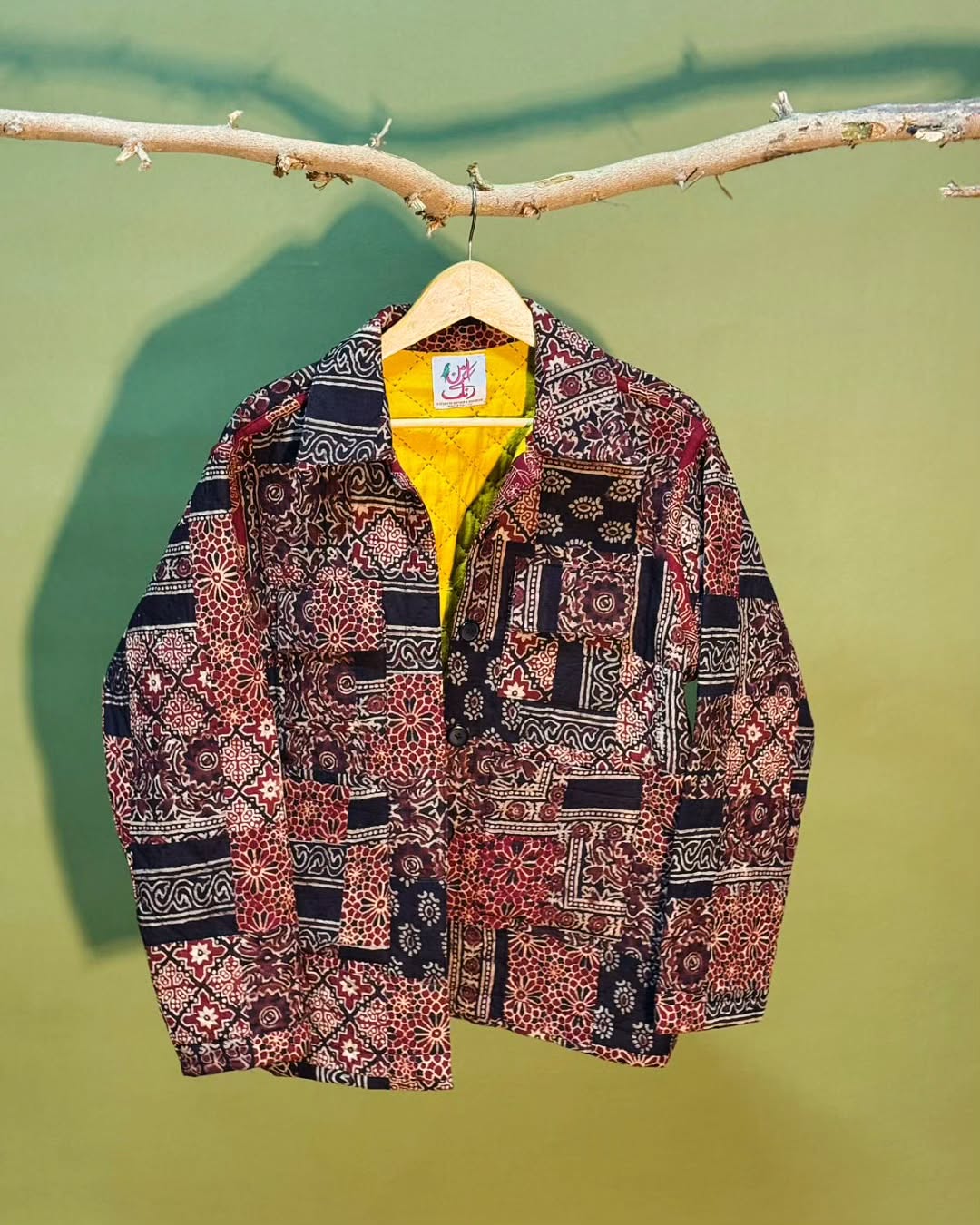 Wrap yourself in sustainable elegance with our Organic Patchwork Kantha Jackets, a harmonious blend of tradition and modernity. Crafted from repurposed fabrics in rich maroon and brown tones, each jacket is quilted with intricate kantha stitching, showcasing the artistry of handmade craftsmanship. These one-of-a-kind creations not only offer warmth and comfort but also tell a story of heritage, sustainability, and timeless style.