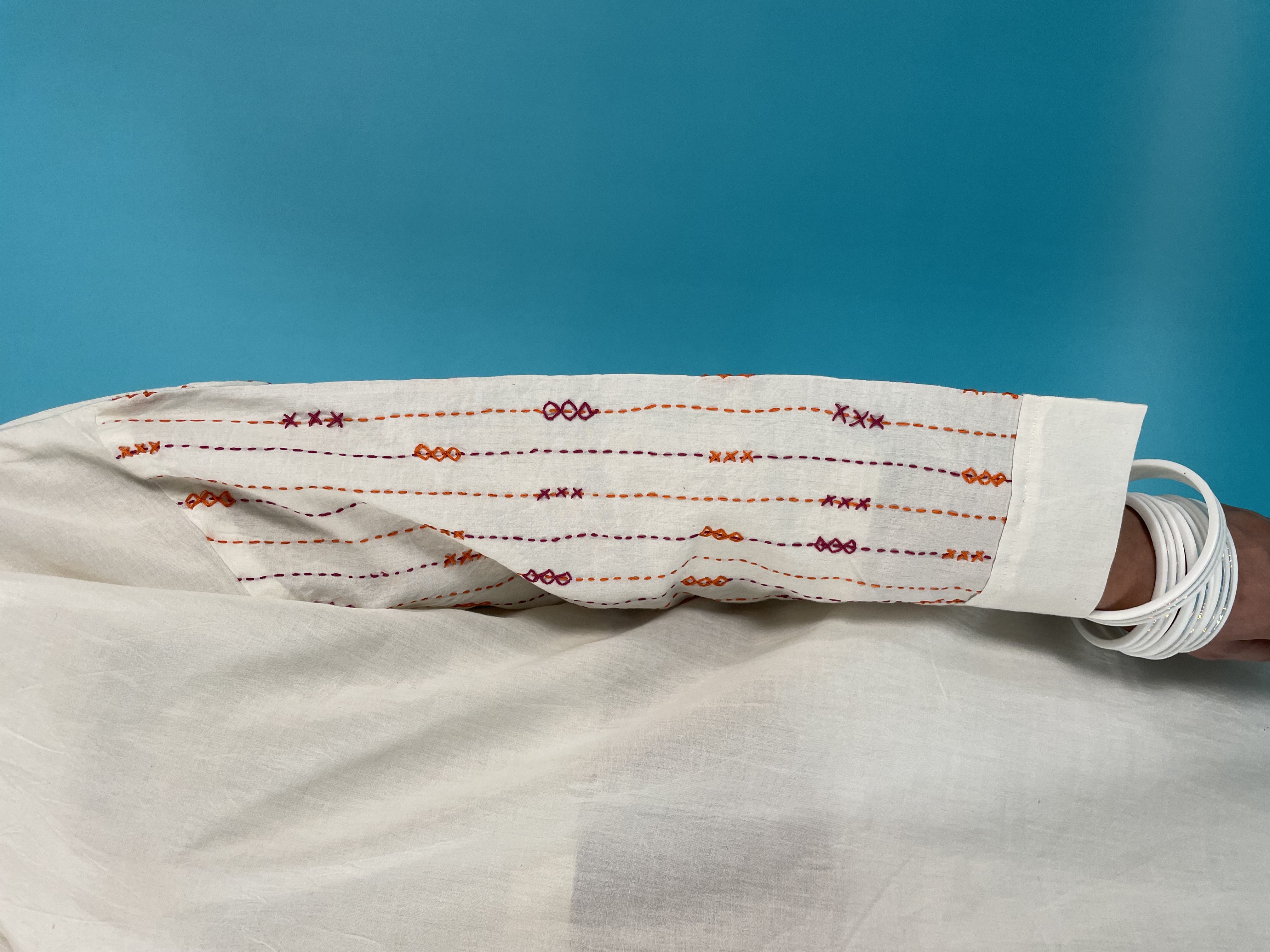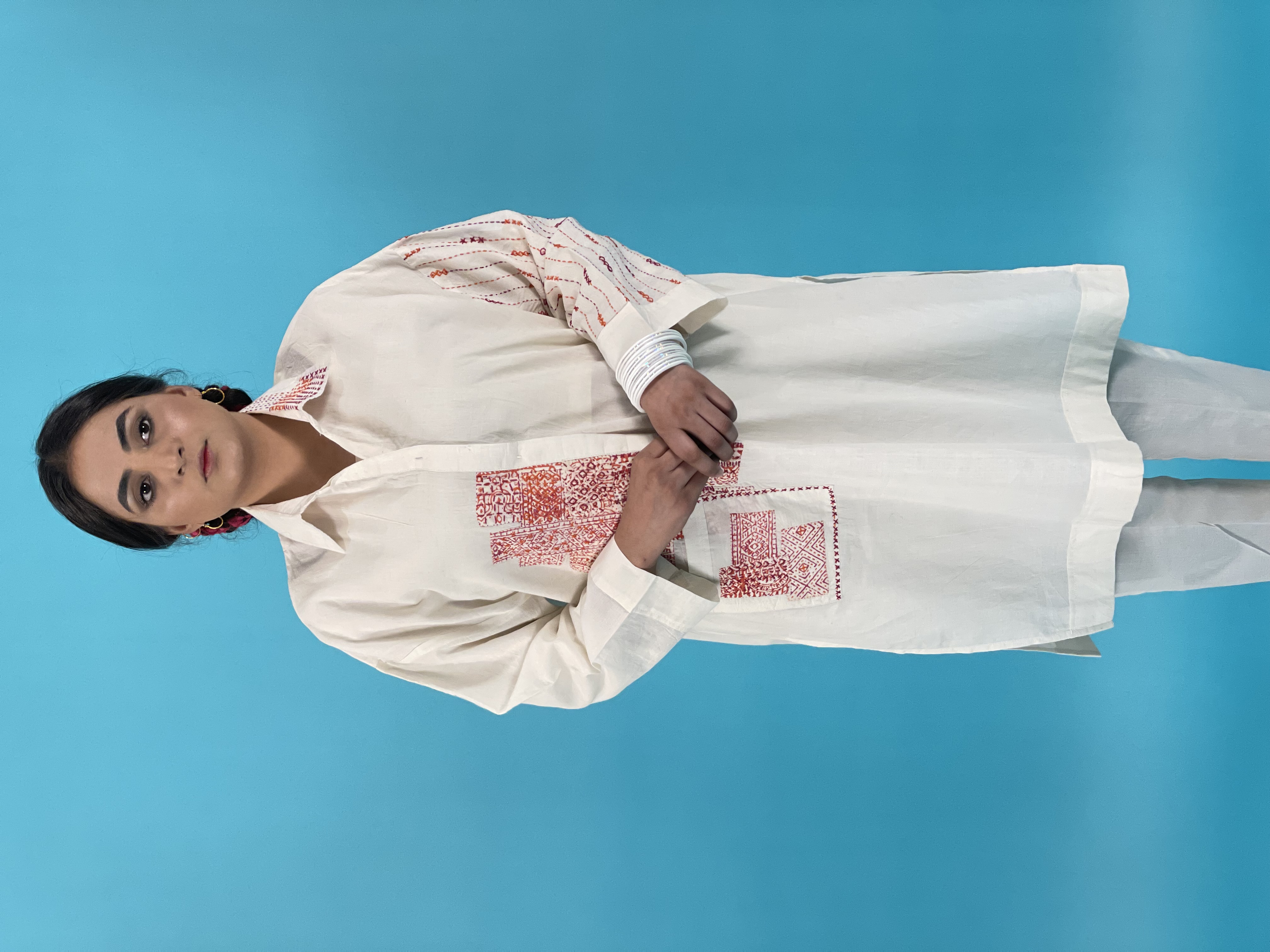 Presenting our new shirt! Off White pure khaadi shirt with block print and different stitch of kantha with patchwork.Made with love & purely handmade work by different artisans from all over Pakistan.