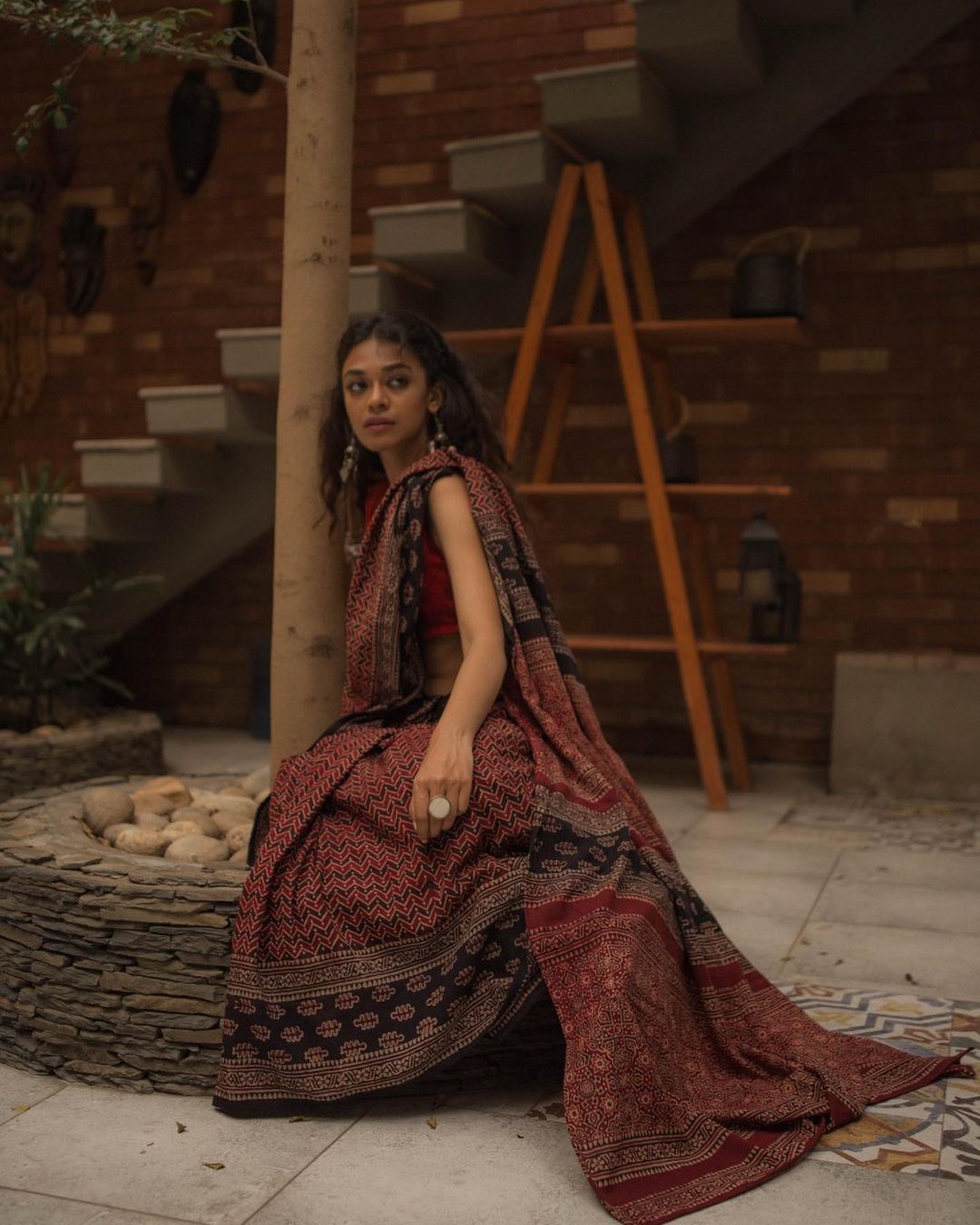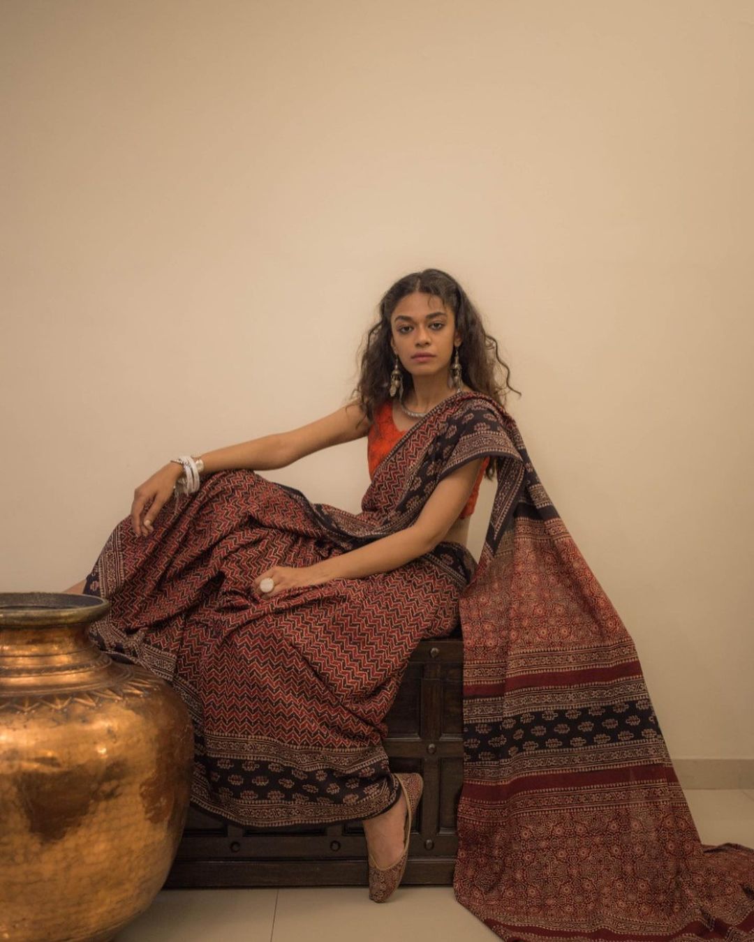 maroon and black Organic Thappa Saree maroon and black Organic Thappa Saree See less