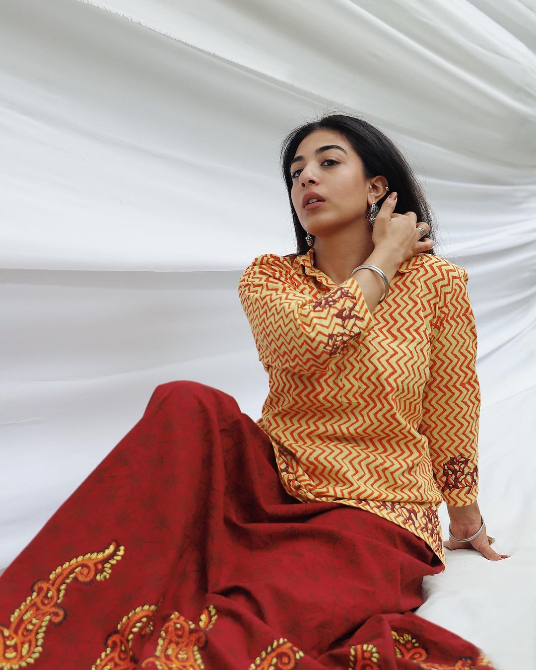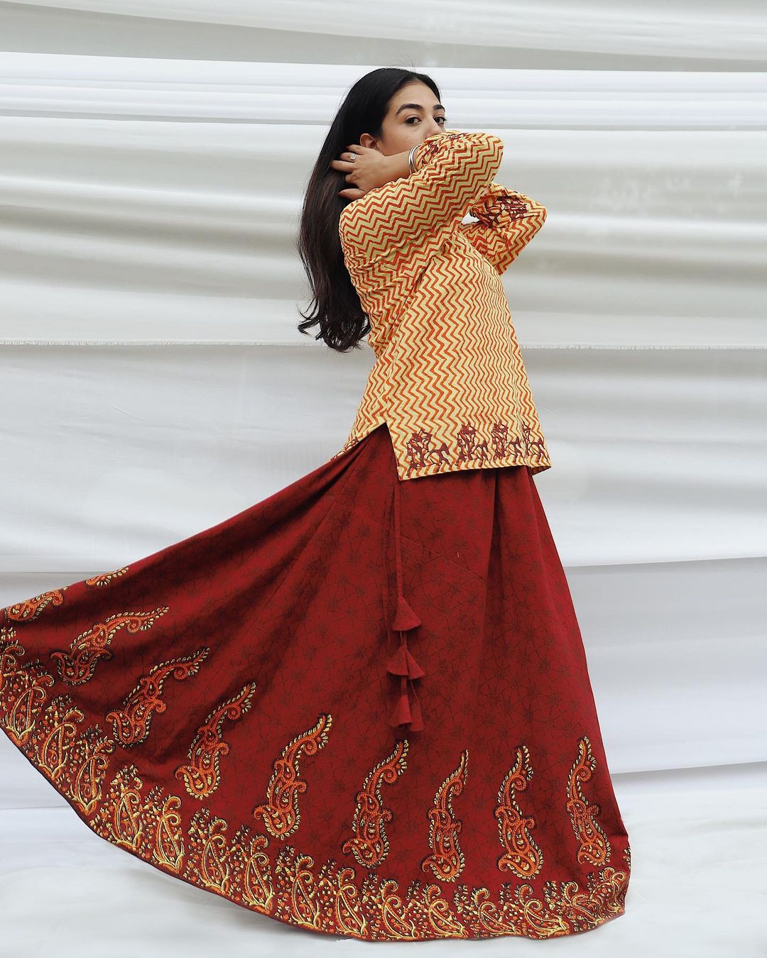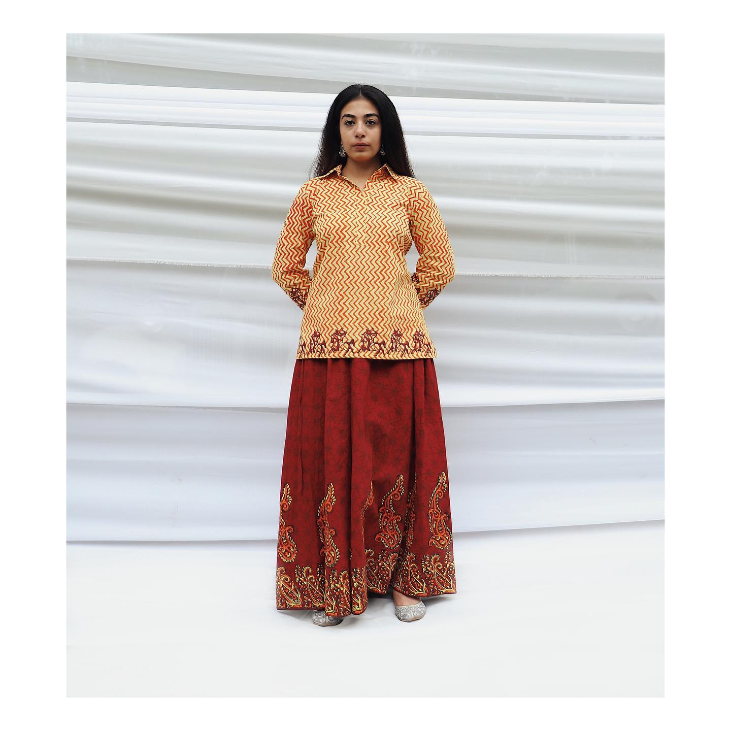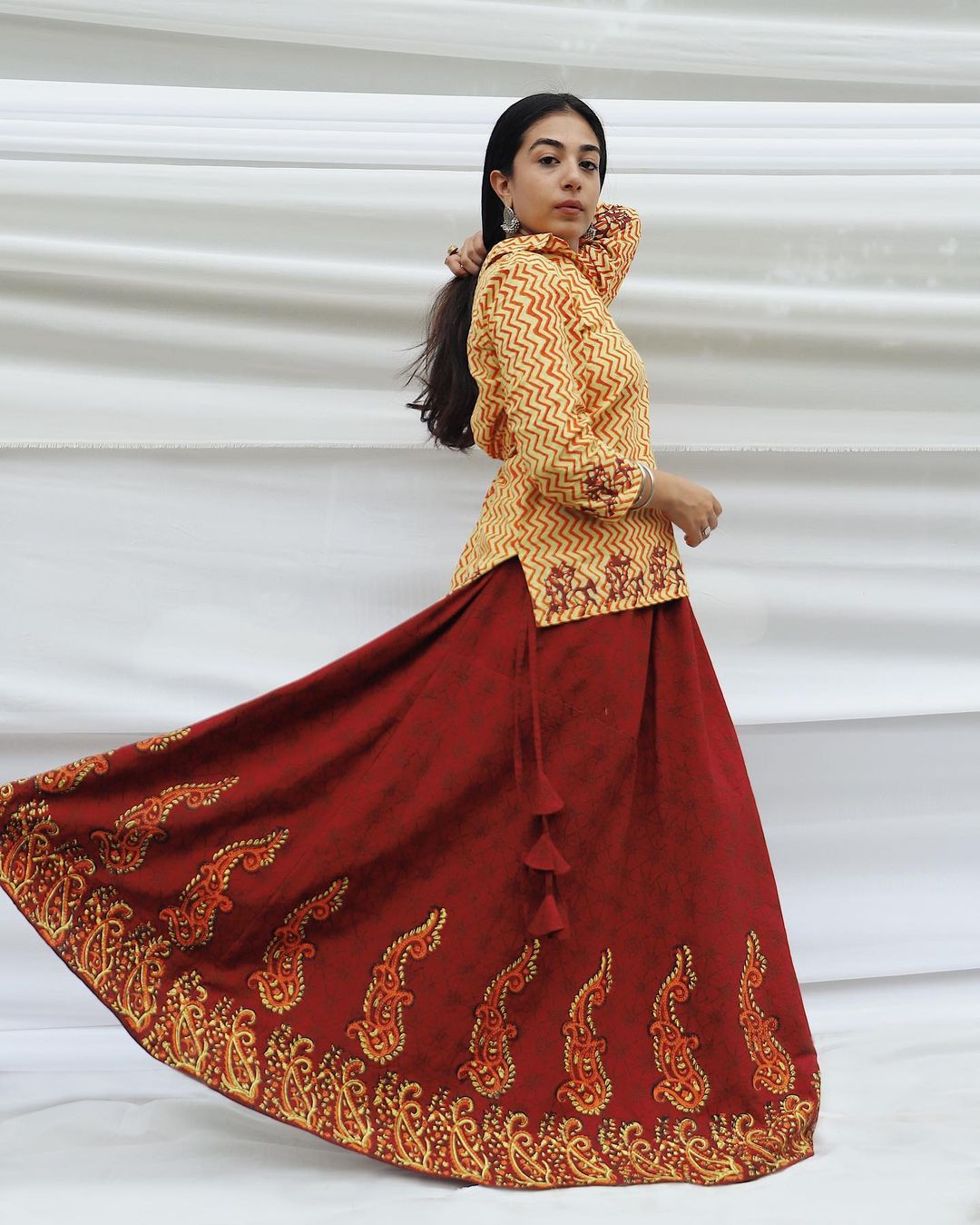 Maroon marvi block printed ghagra Maroon marvi block printed ghagra See less