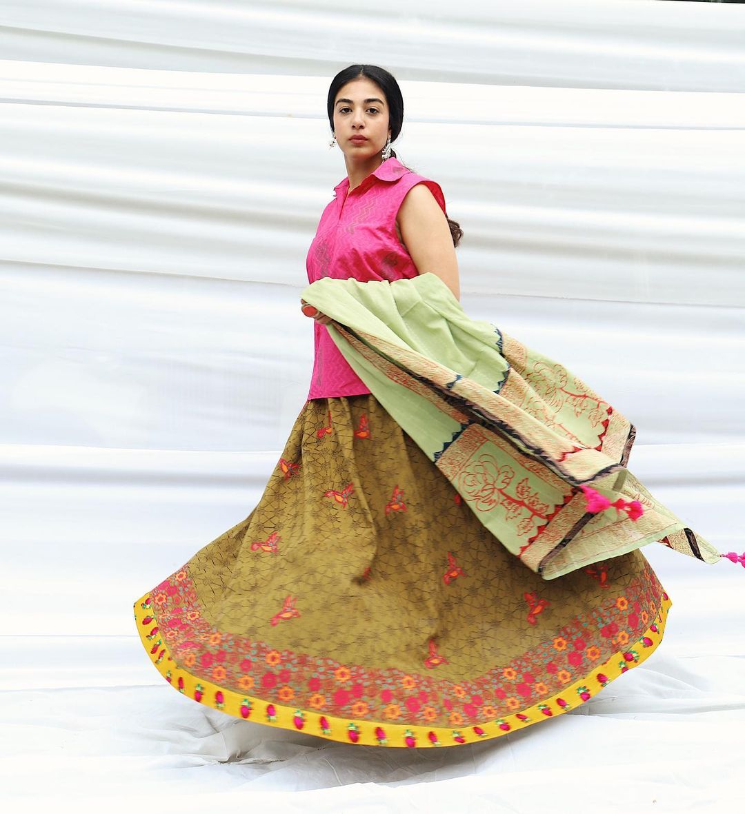 Tag: Red marvi block printed ghagra, Mehndi Green marvi block printed ghagra