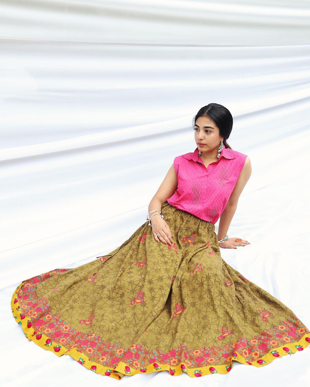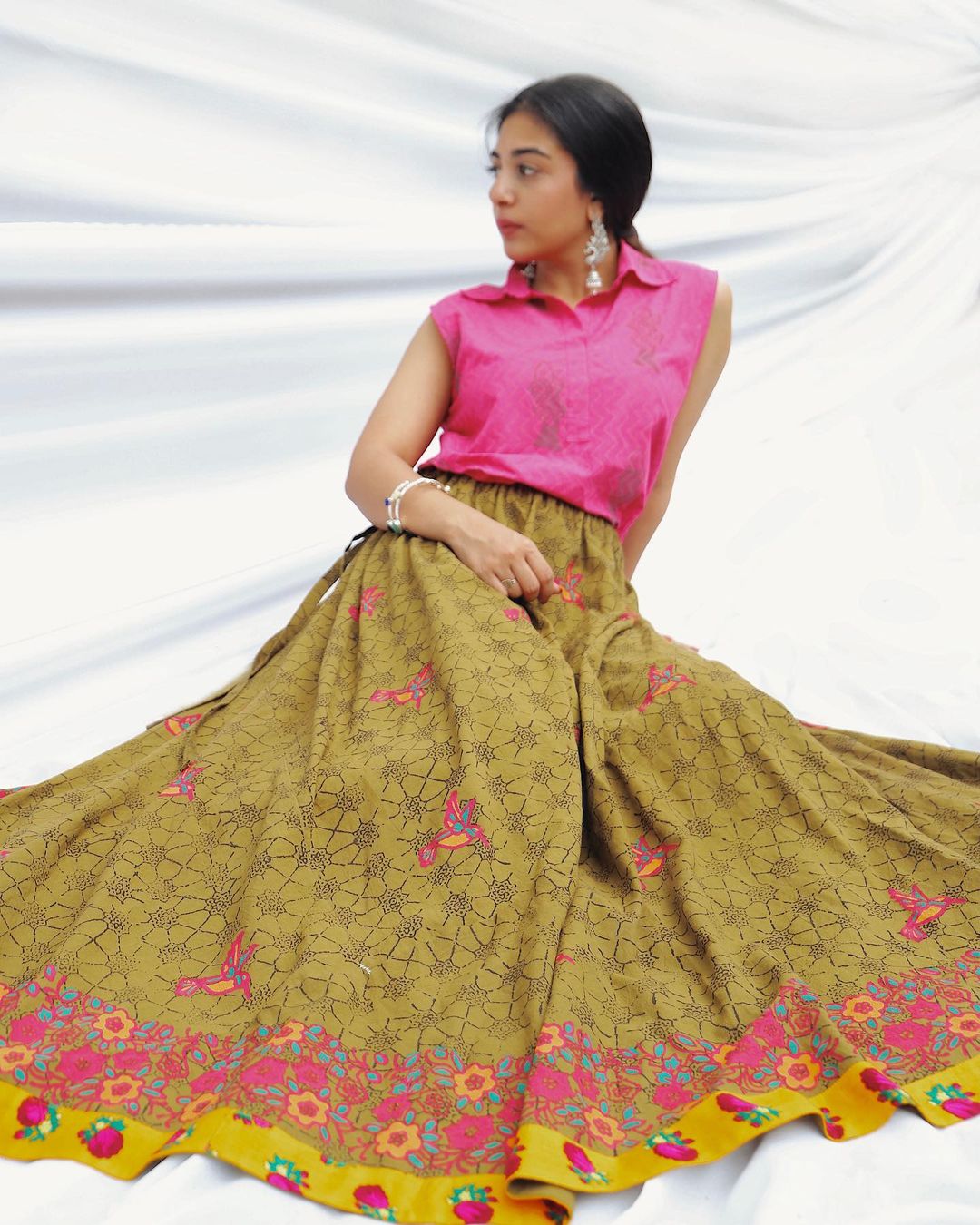 Mehndi Green marvi block printed ghagra Mehndi Green marvi block printed ghagra See less