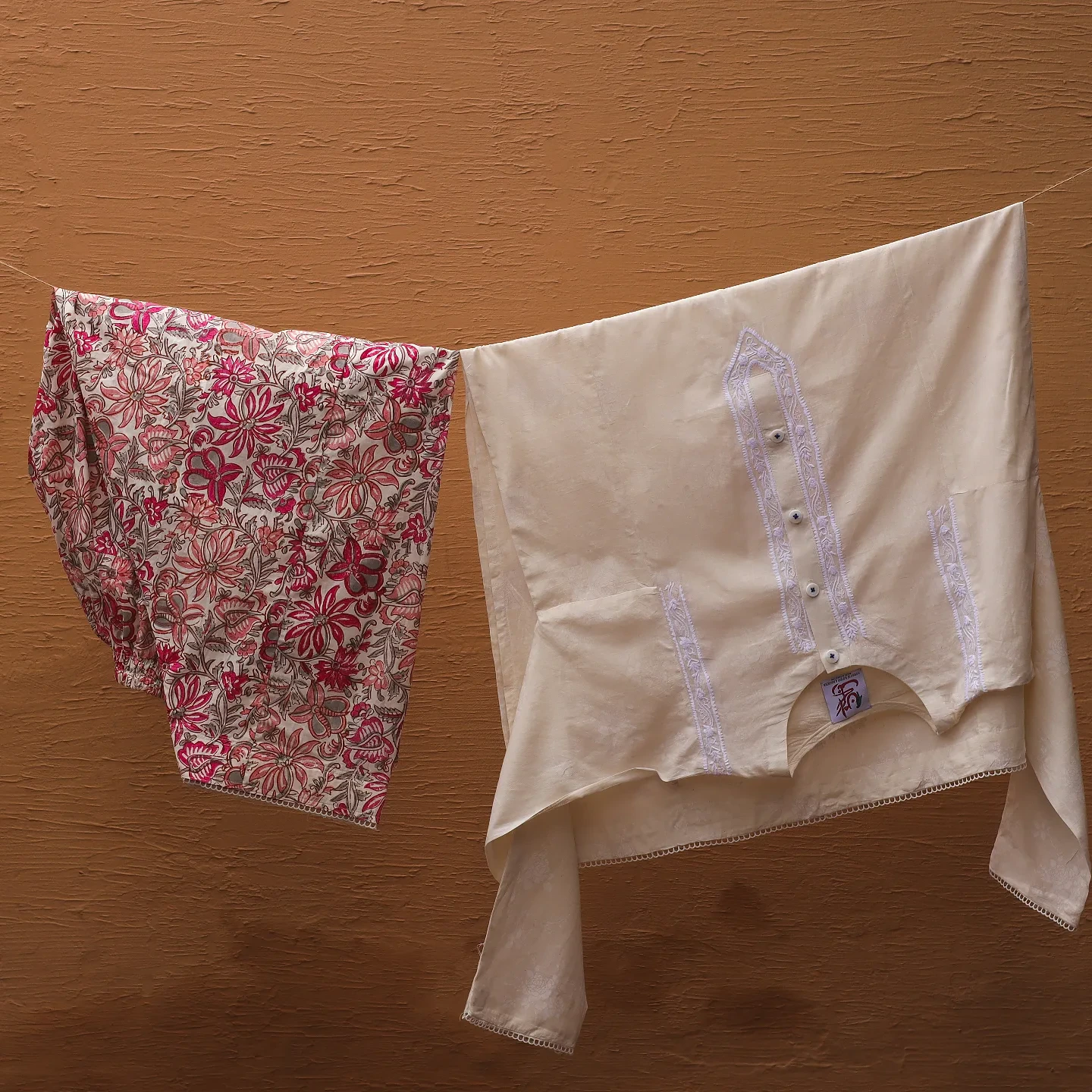 Adorn yourself in the elegance of block-printed shalwars and the artistry of screen-printed, embroidered kurtas—crafted for the woman who blooms like a rose, radiates happiness, and wears every color with grace.