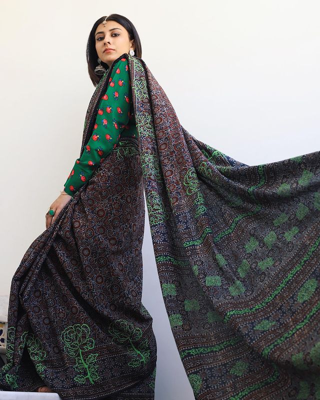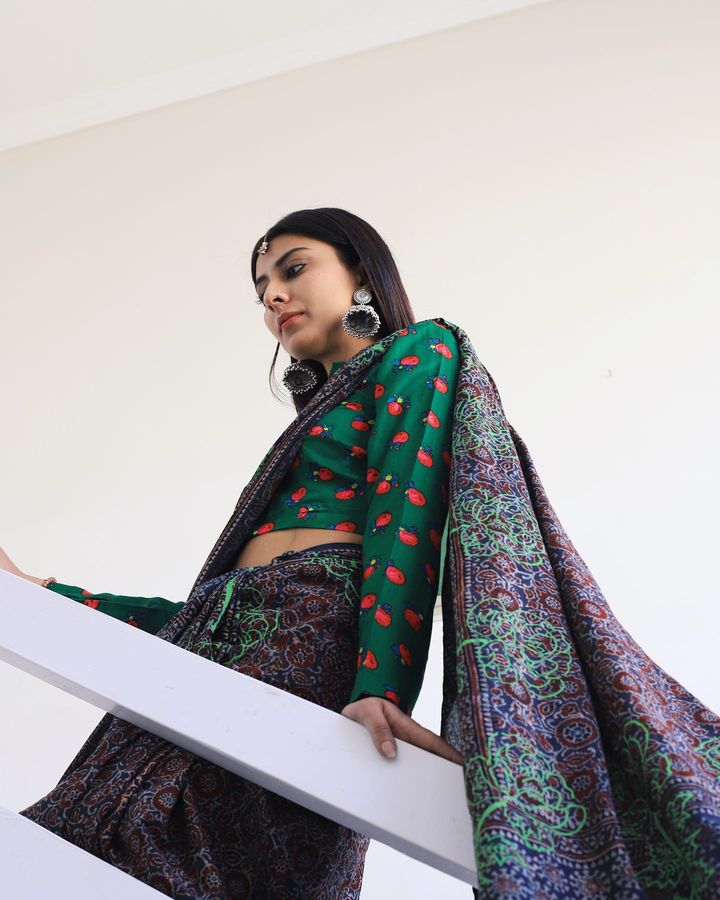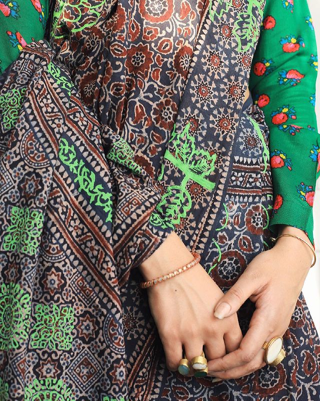Naturally Dyed Organic Saree with Thappas Naturally Dyed Organic Saree with Thappas See less