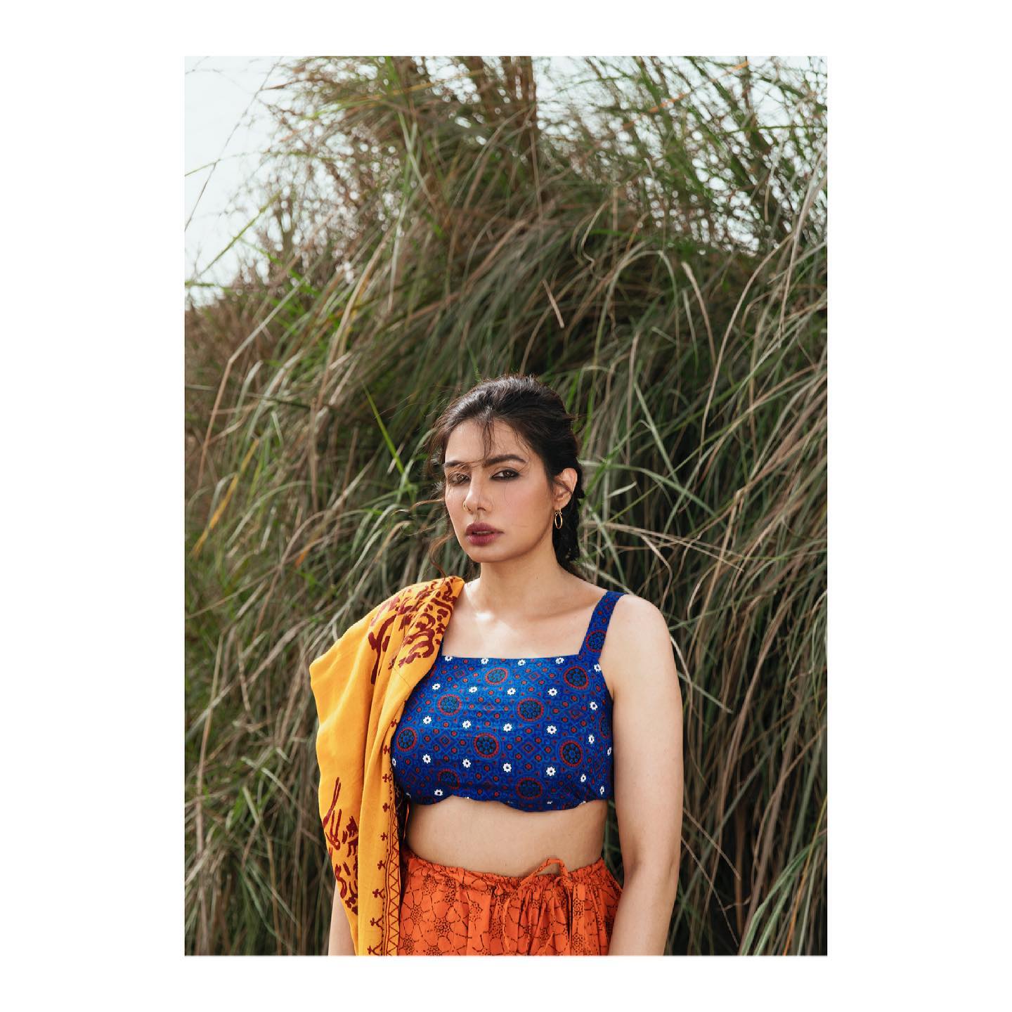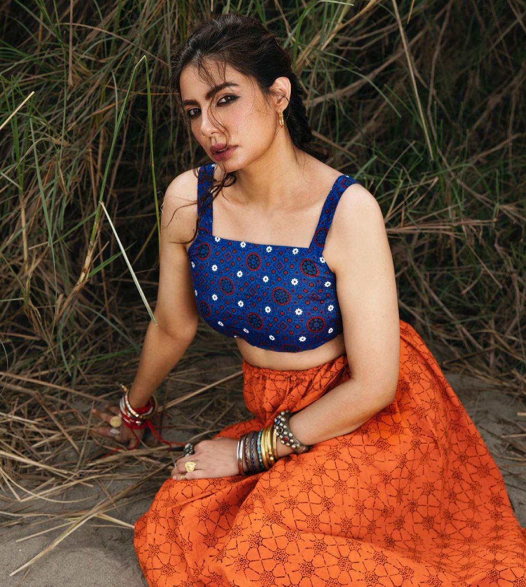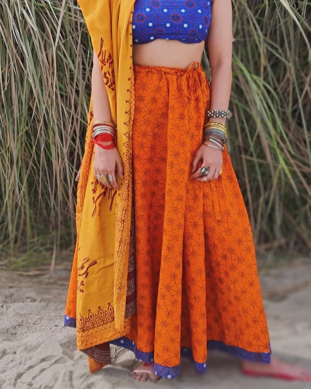 organic hand dyed and hand block printed Ghaghra and doshala.