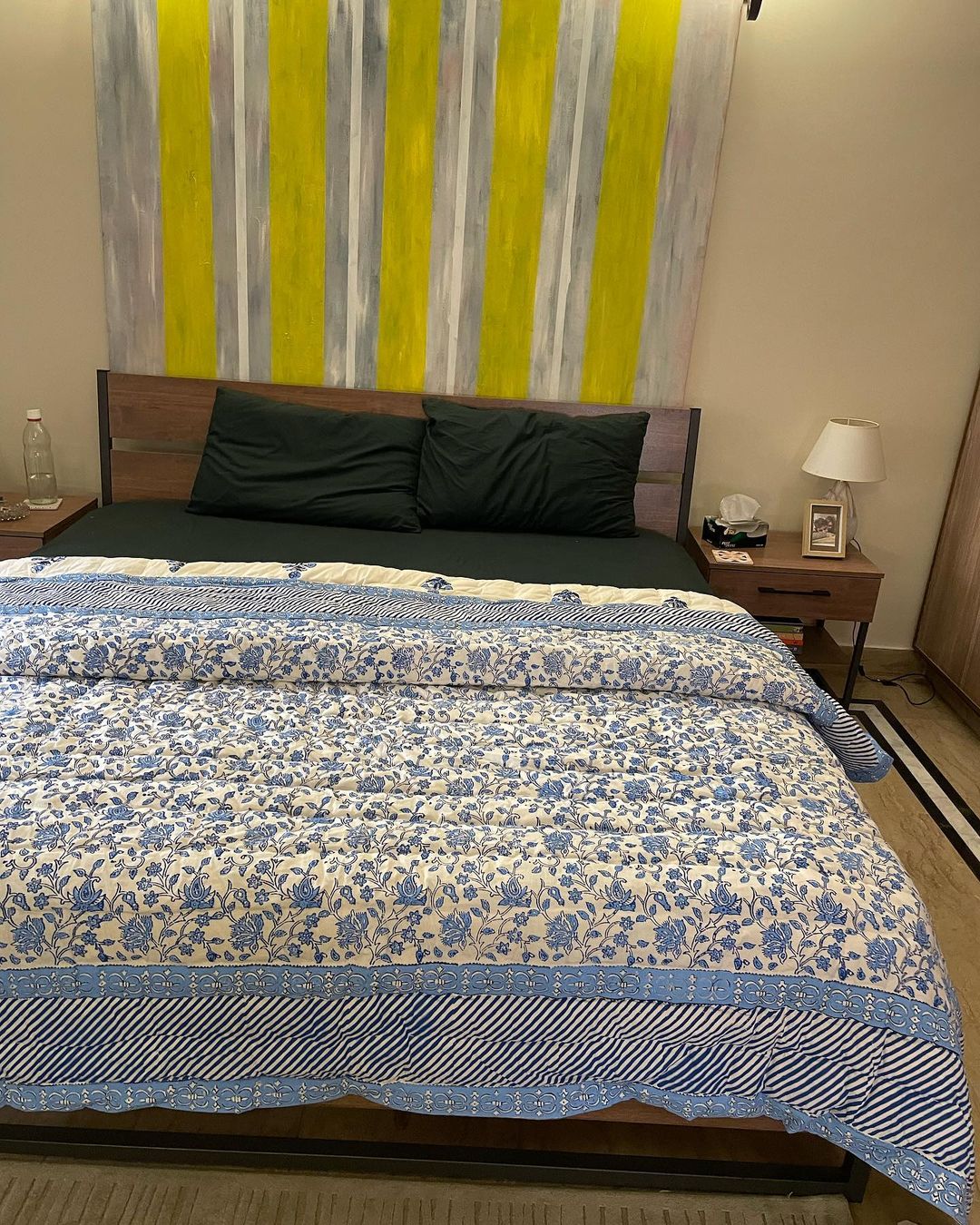 Tag: Double-sided Dolai for your King-sized bed. Made with Organic Cotton and aesthetic block-printing on both sides.