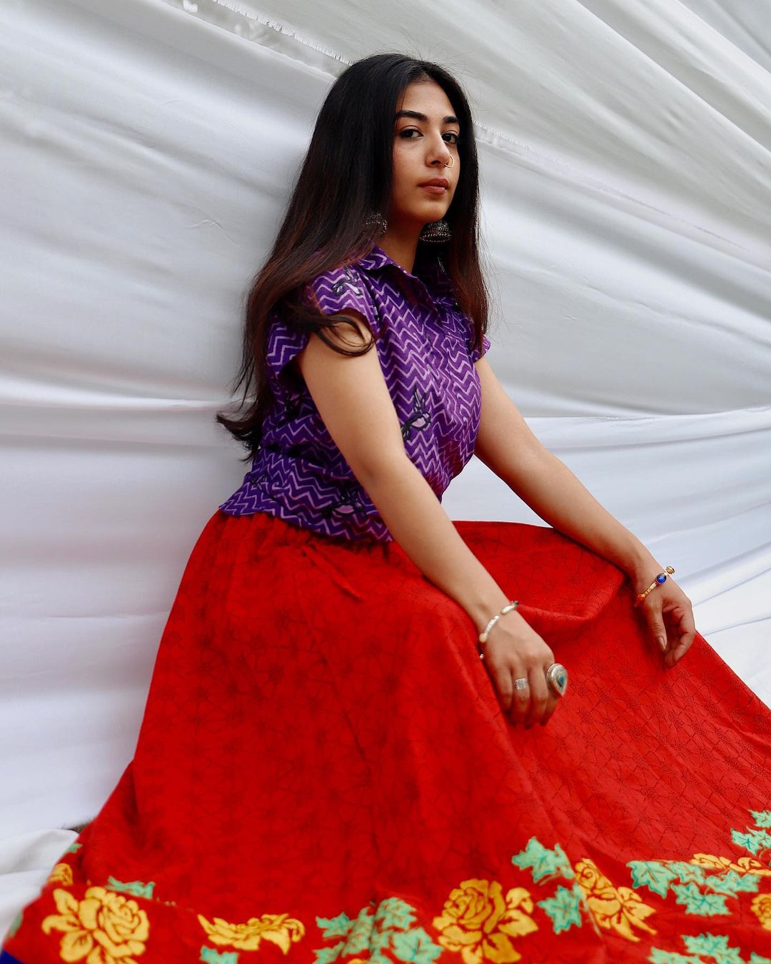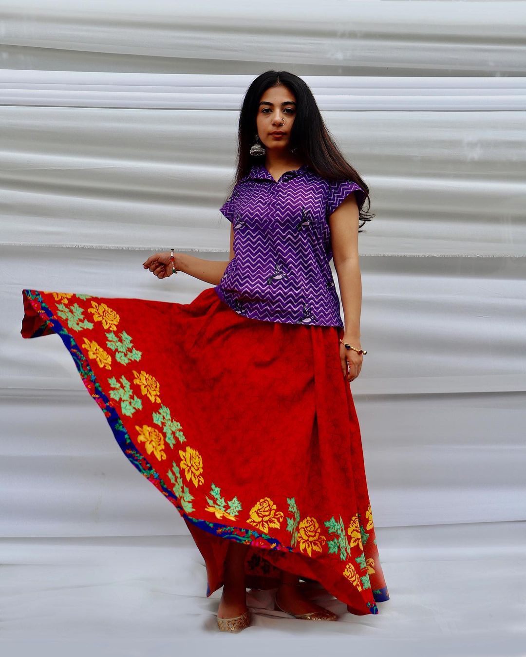 Red marvi block printed ghagra Red marvi block printed ghagra See less