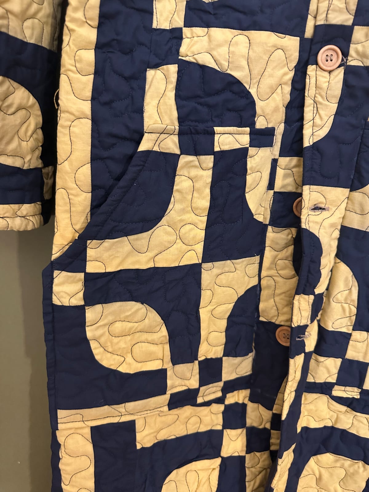The Safar – Mizaj – Jacket draws inspiration from temperament and self-expression shaped through experience. Crafted using traditional patchwork techniques and subtle embroidered accents, this jacket balances texture with a contemporary form. Its understated detailing and versatile silhouette make it an expressive yet wearable piece for those who value individuality in artisanal fashion.