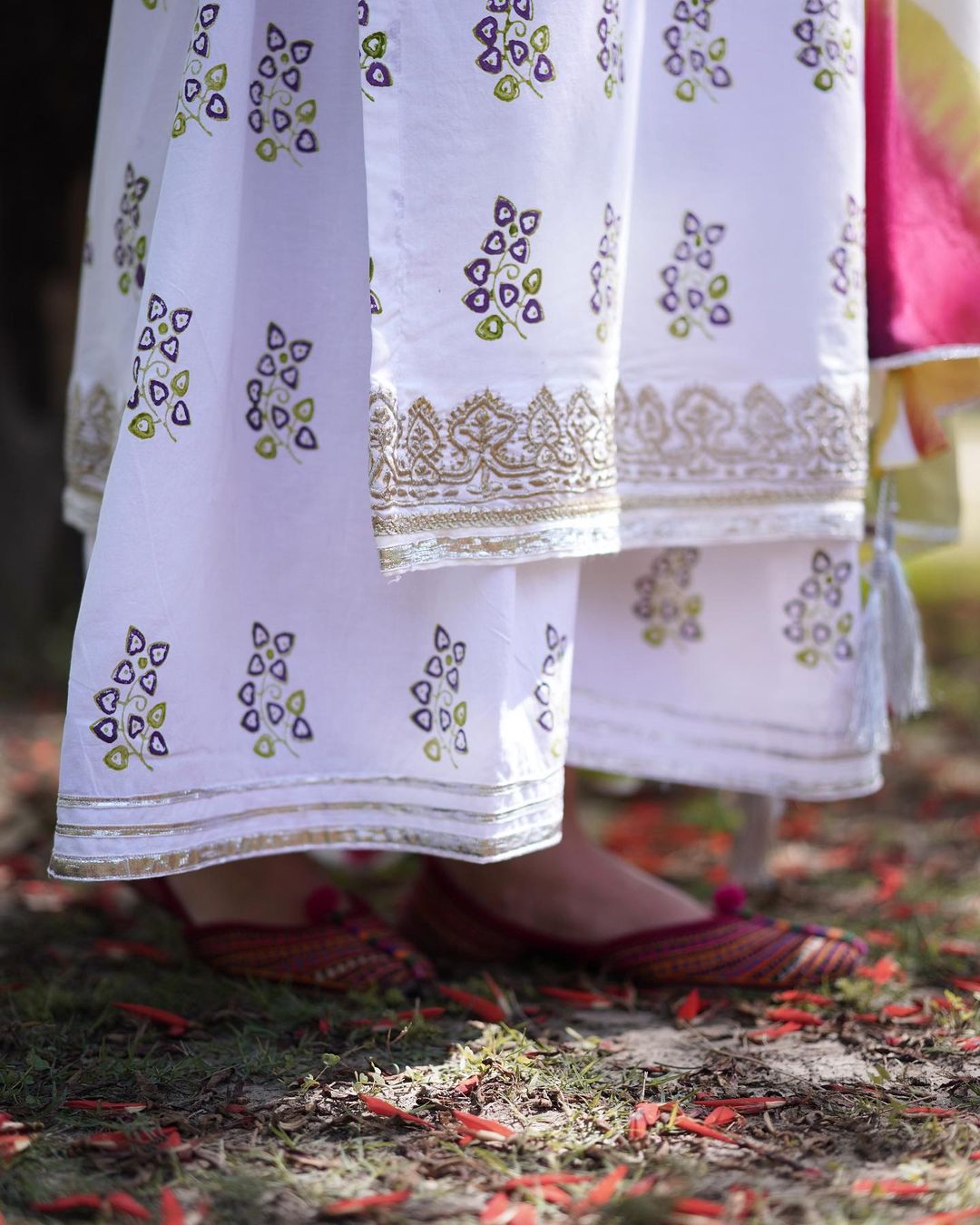 Third Block printed tilla work kurta shalwar with chatapati dupatta.