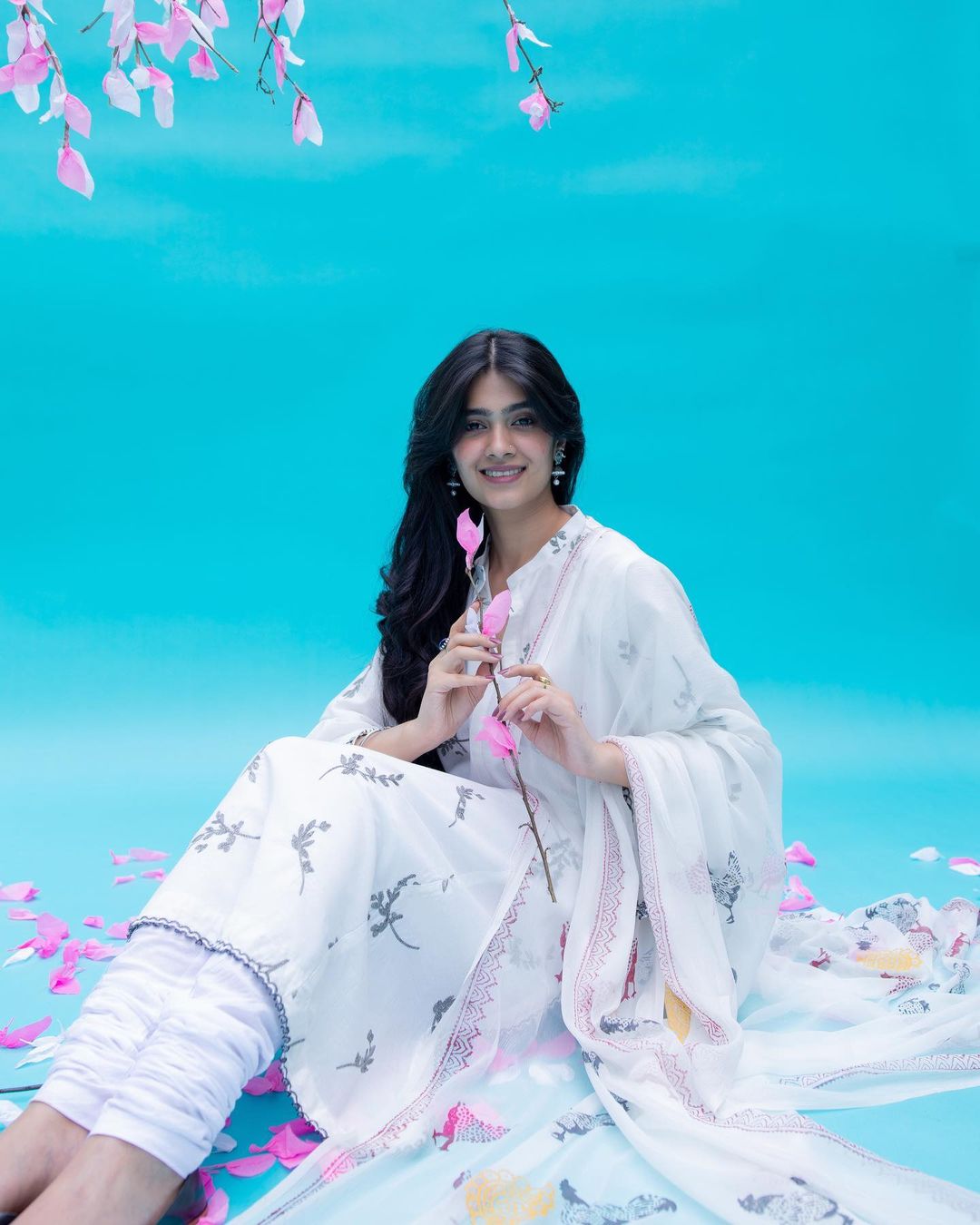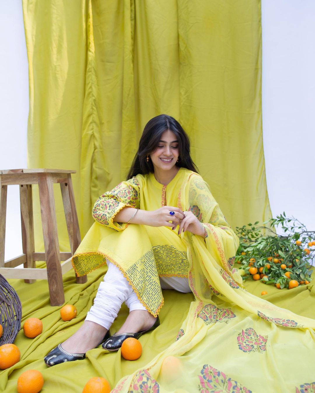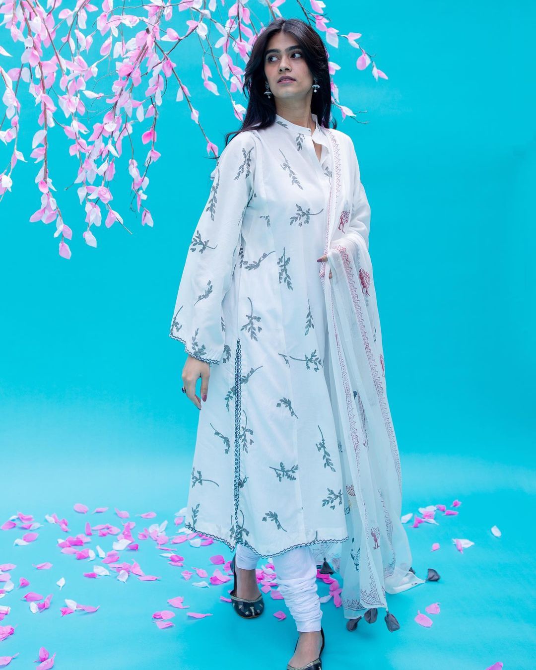 white kurta, with chiffon dupatta in block printwhite kurta, with chiffon dupatta in block printSee less