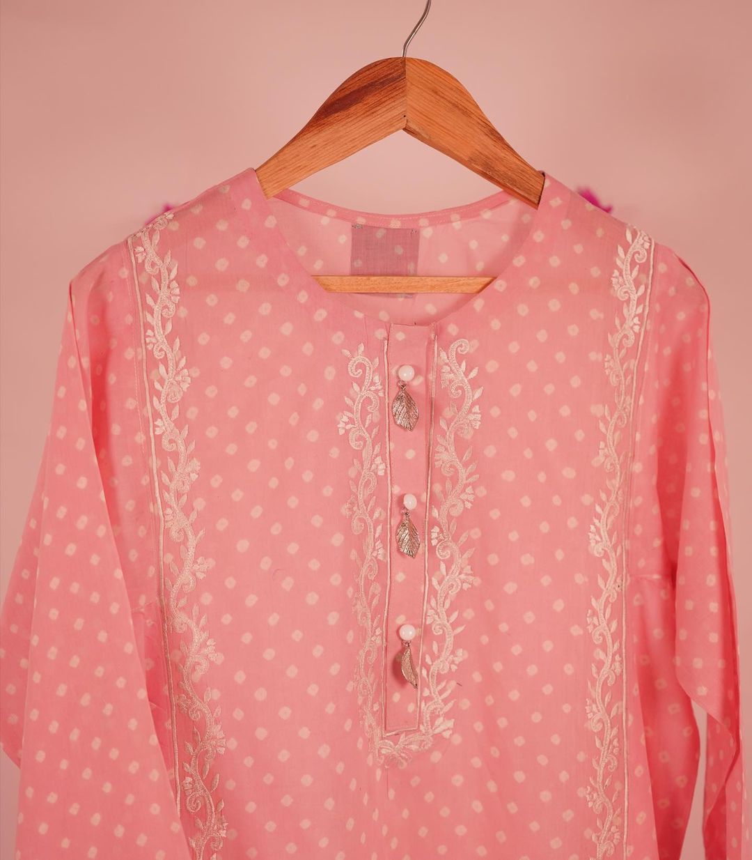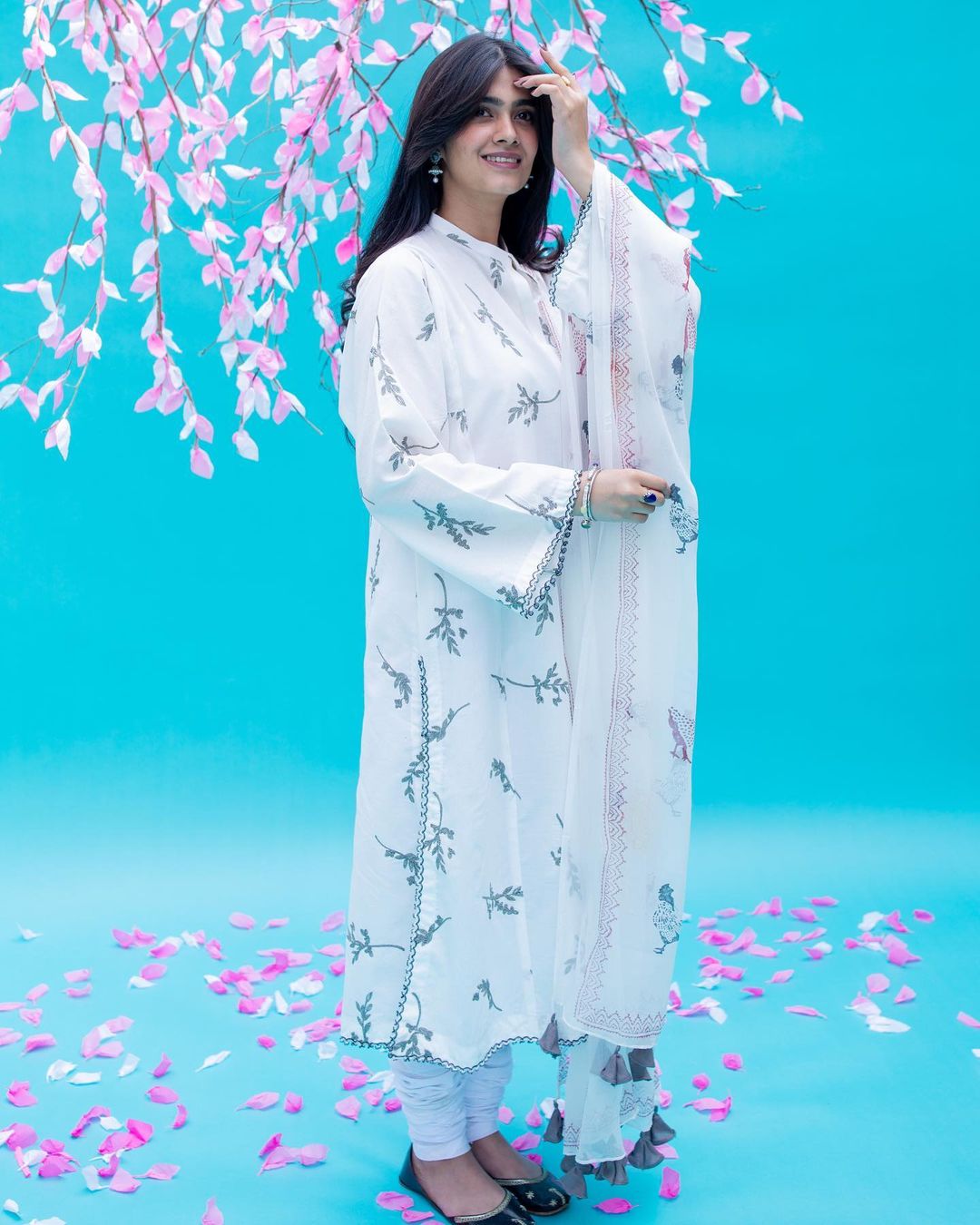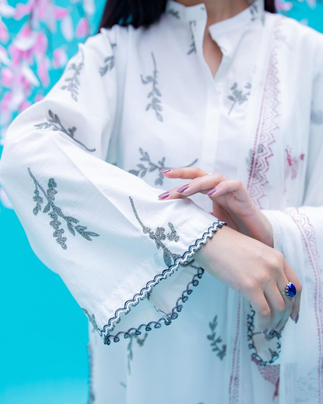 Artistically crafted black on white embroidered cotton kurta, paired with a gorgeously airy chiffon dupatta in block print, making it perfect to keep you cool in hottest of days.