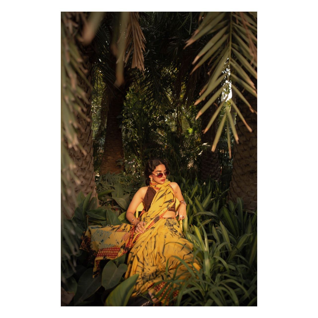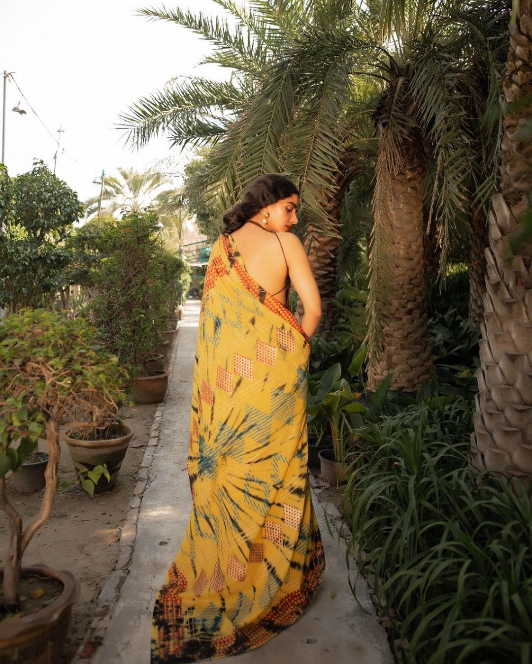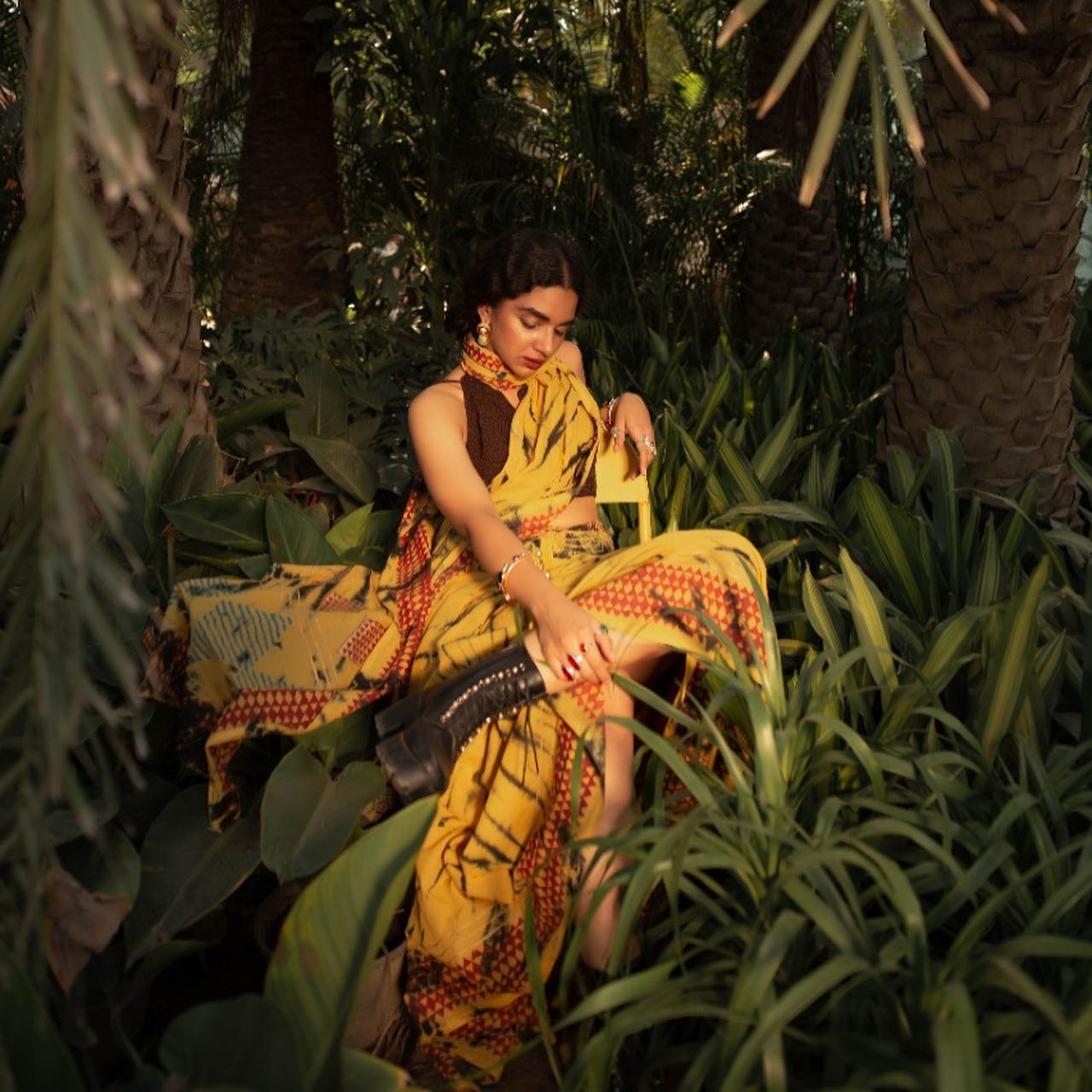 Tag: Yellow Tie and Dye Saree with gold block-printing