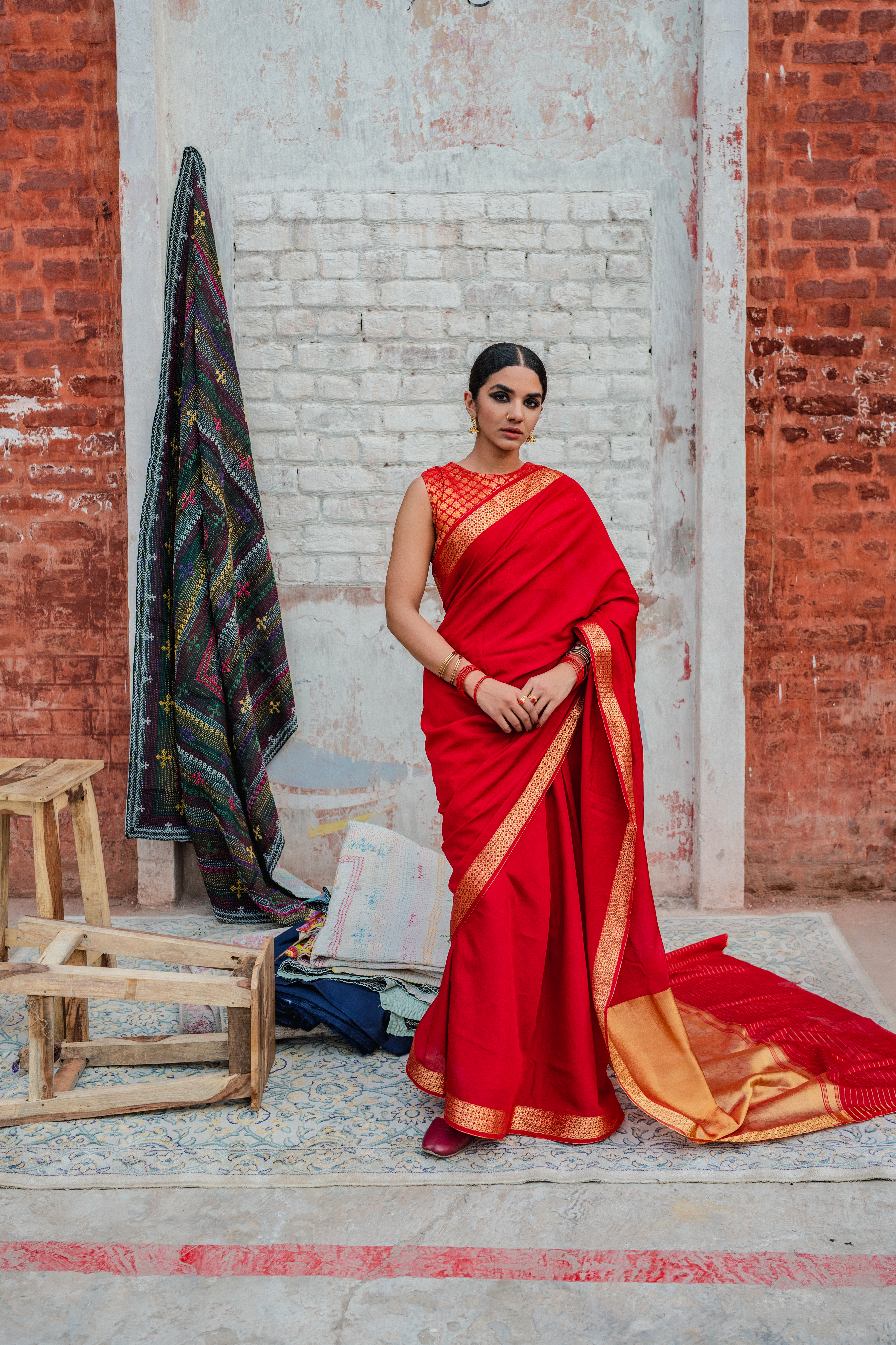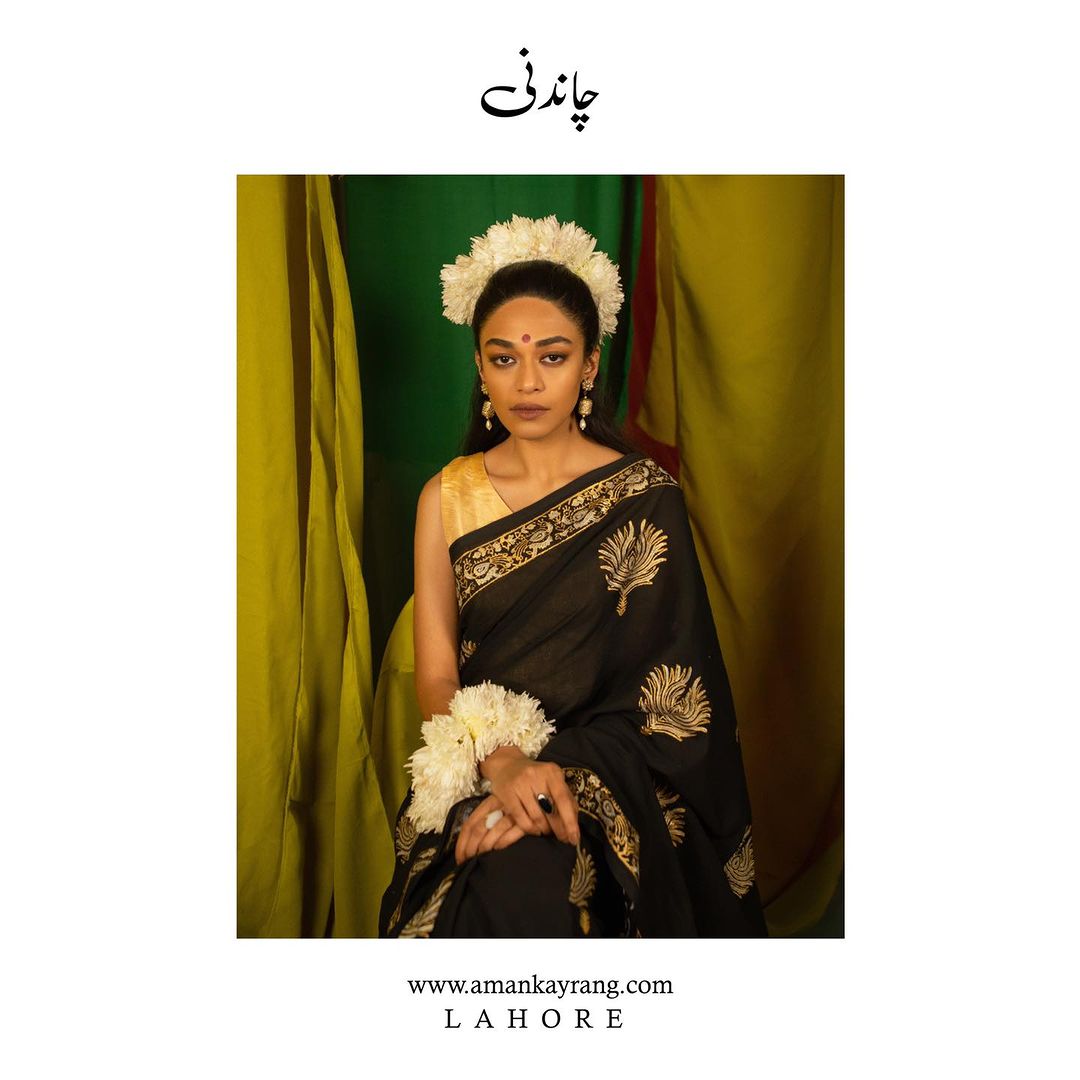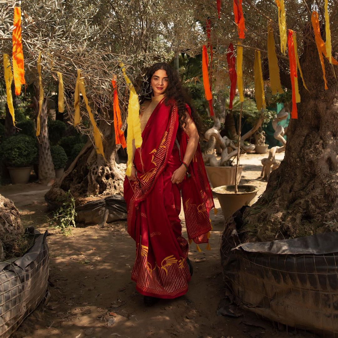 Dove Block-Printed Saree with transition from Blue to Yellow...
